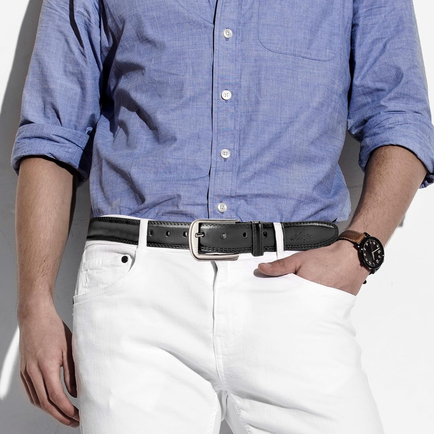 - 💝【Suitable for Various Occasions】The classic black color and sleek buckle design ensure this belt complements any outfits. This men’s belt is perfect for daily wear, as well as for formal occasions such as work, business meetings, interviews, weddings, etc. We are committed to providing our customers with satisfactory products and services. If there are any issues with the mens leather belt, please feel free to contact us and we will reply within 24 hours.