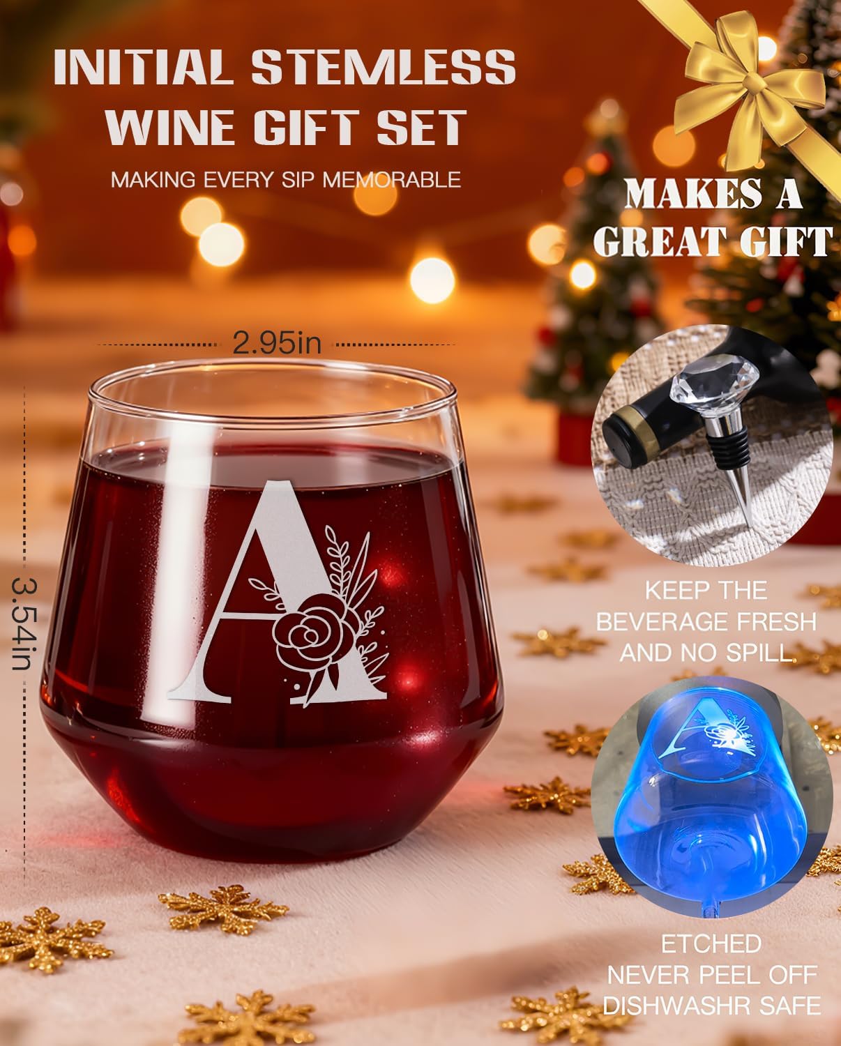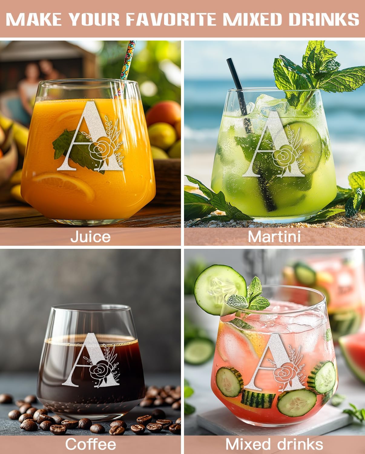 • 🎁Monogrammed gifts for women:Mark important milestones with a monogrammed initial wine glass stemless. Our Initial (Letter A) wine glass with no stem is chosen to commemorate birthdays and special occasions, adding sentimental value to your thoughtful gift.