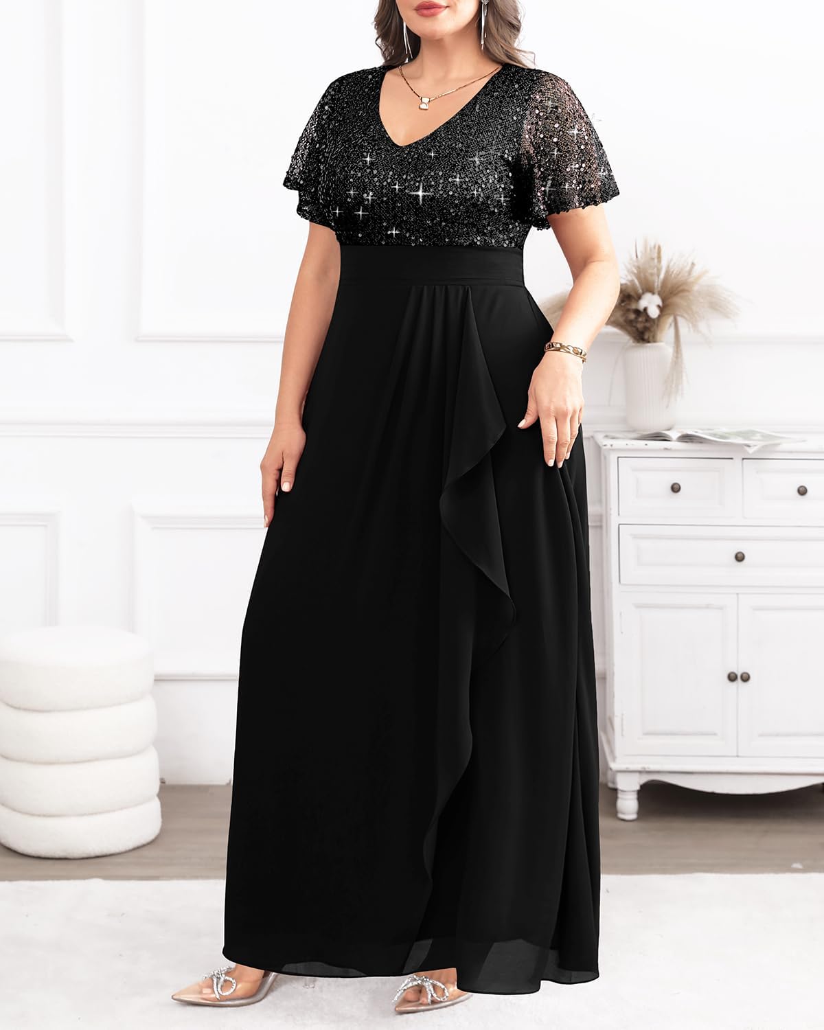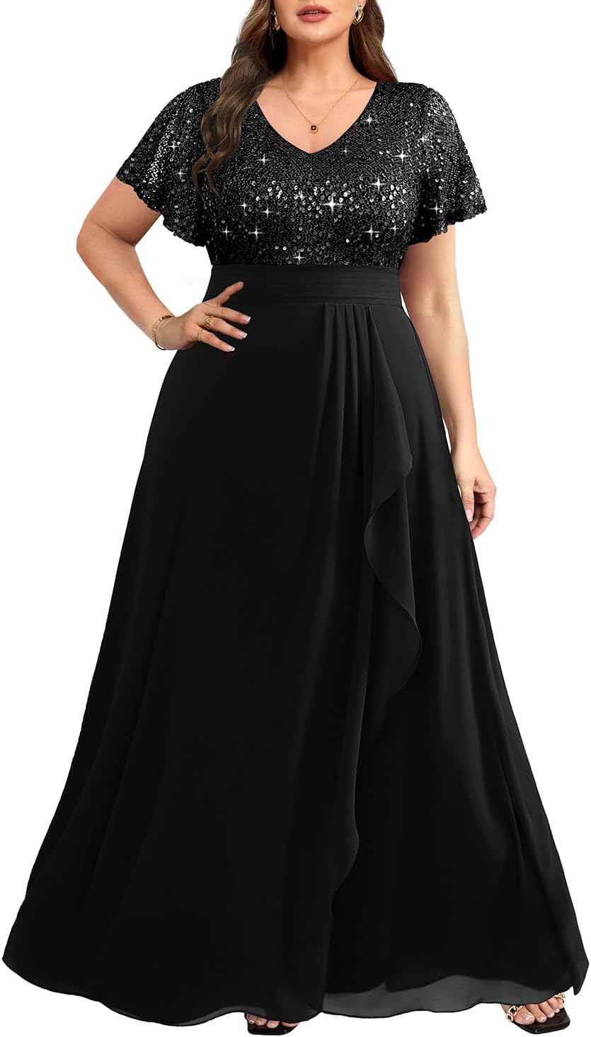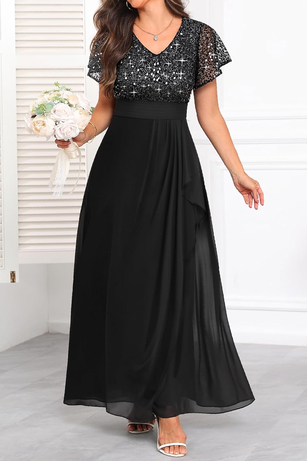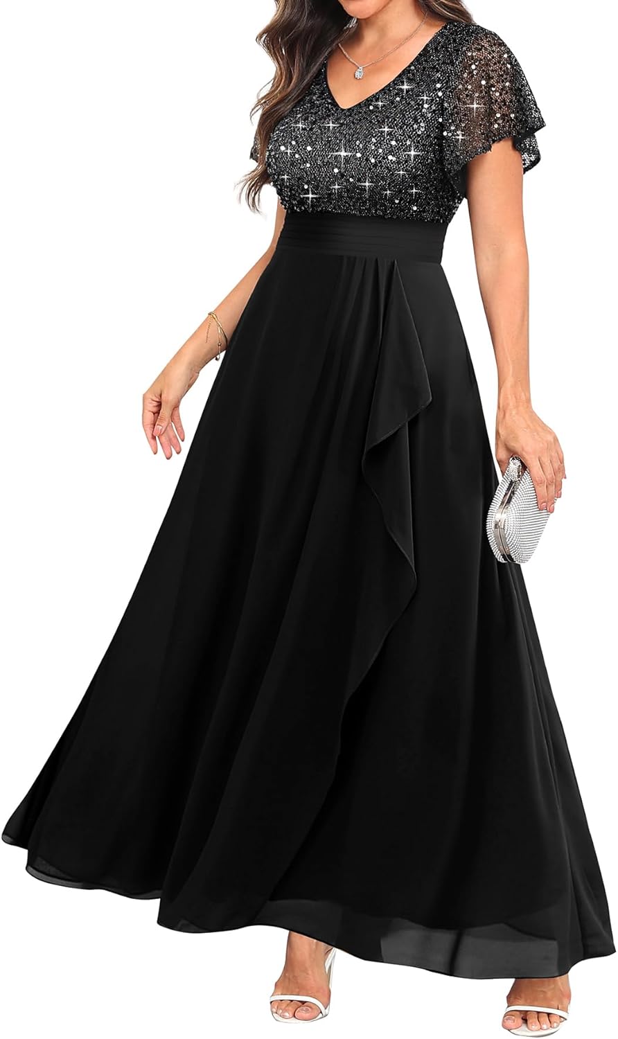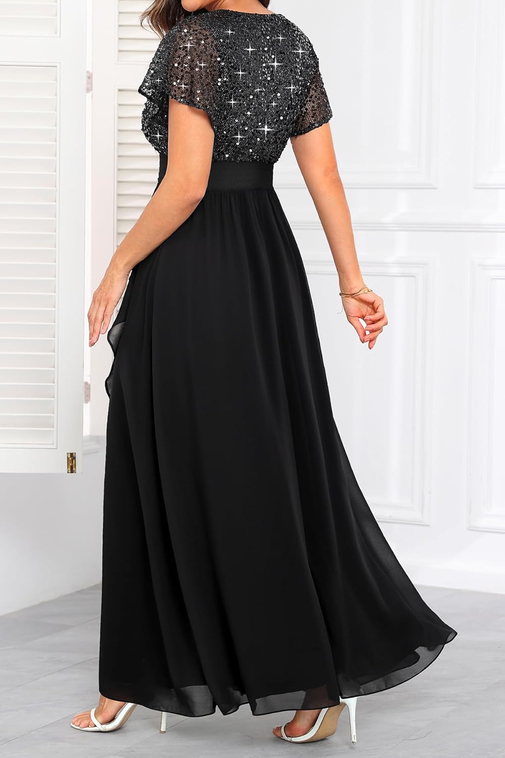 - 【Sequin Design】The sequin top makes you look charming and shiny, giving off a romantic vibe. No matter the occasion, this sequined formal evening dress with sleeves will make you look gorgeous and elegant.