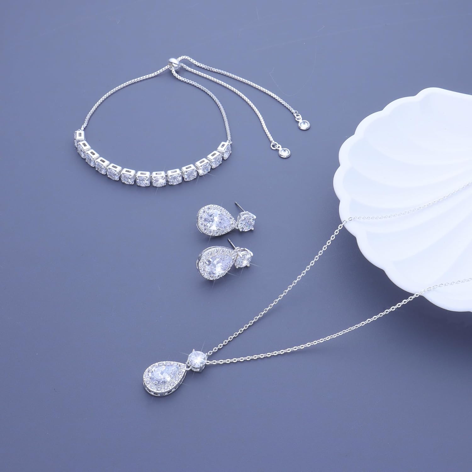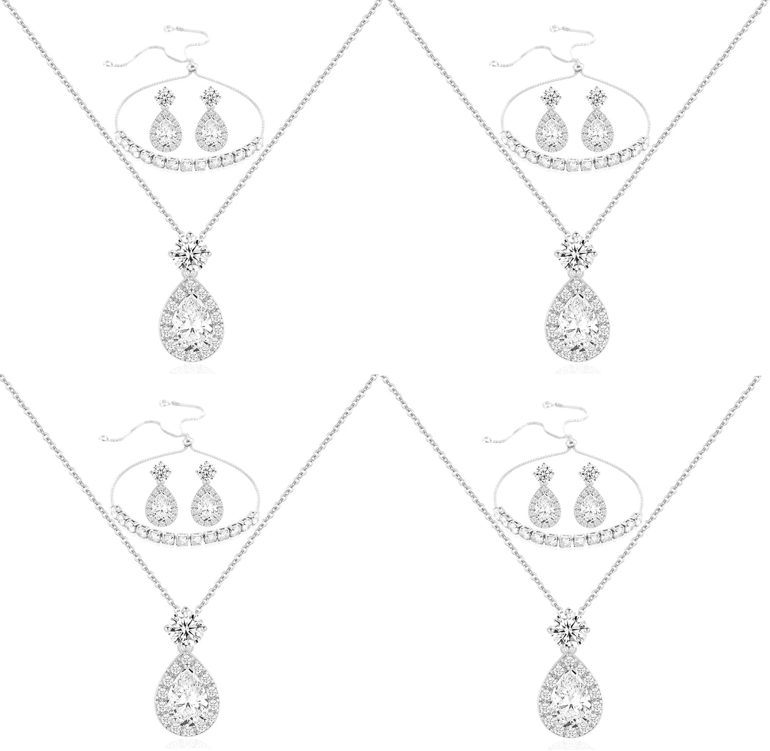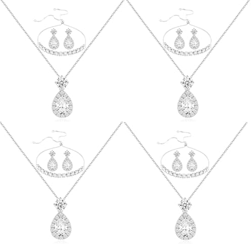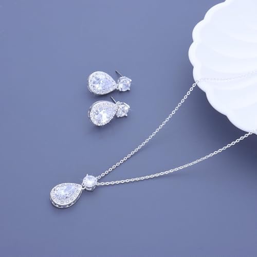 - [STUNNING DESIGN] Featuring dazzling teardrop-shaped cubic zirconia surrounded by tiny sparkling stones, this jewelry set catches every eye, perfect for bridesmaids and weddings.