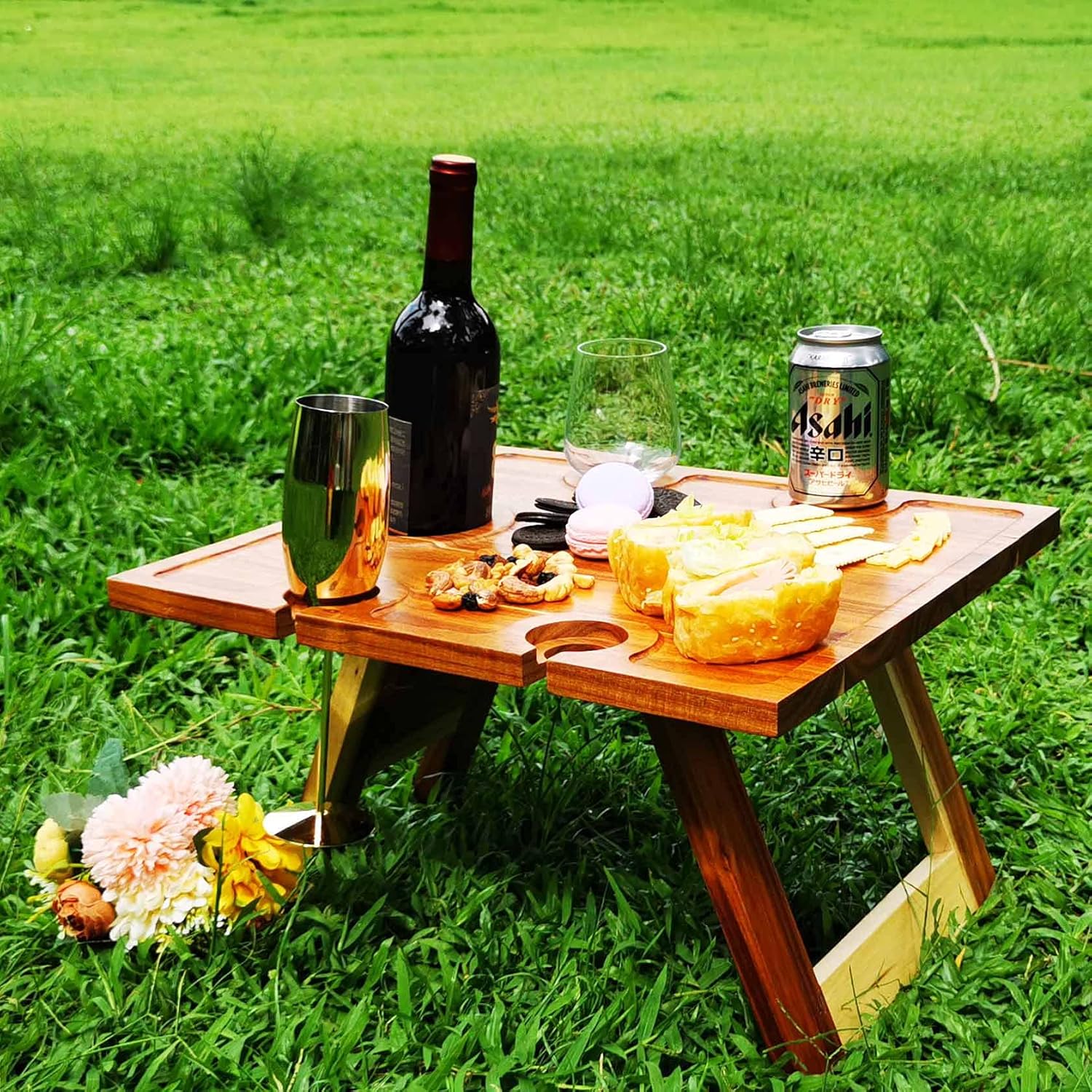 • 【No Assembly Required】This aesthetic picnic accessory can be folded into a compact shape which is easy to carry, set-up, break-down and store. The portable foldable design makes your travel more casual. This wine and glass holder is more resistant to bends scratches and fading than others. We built this sturdy wine table to stand the test of time.