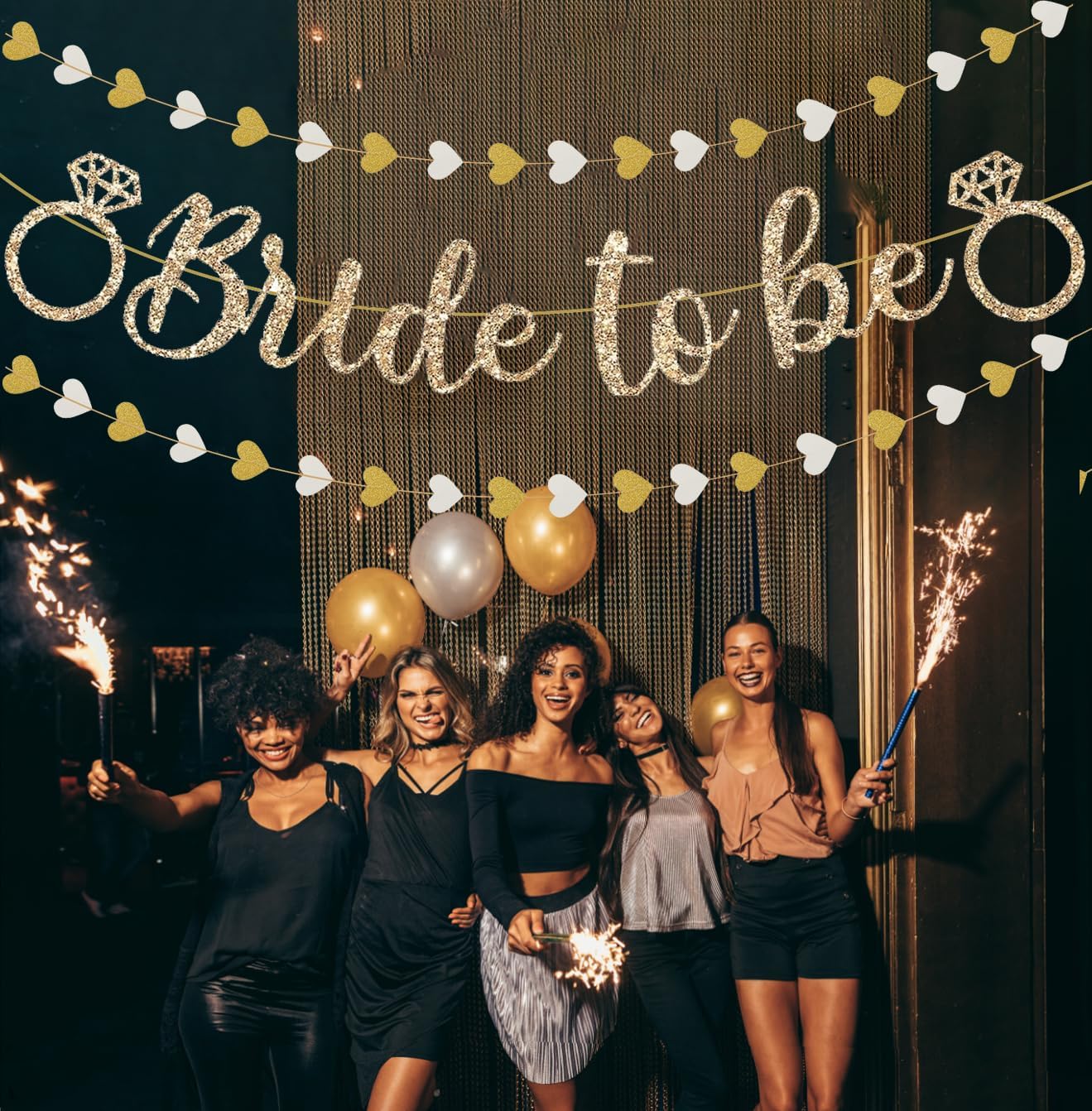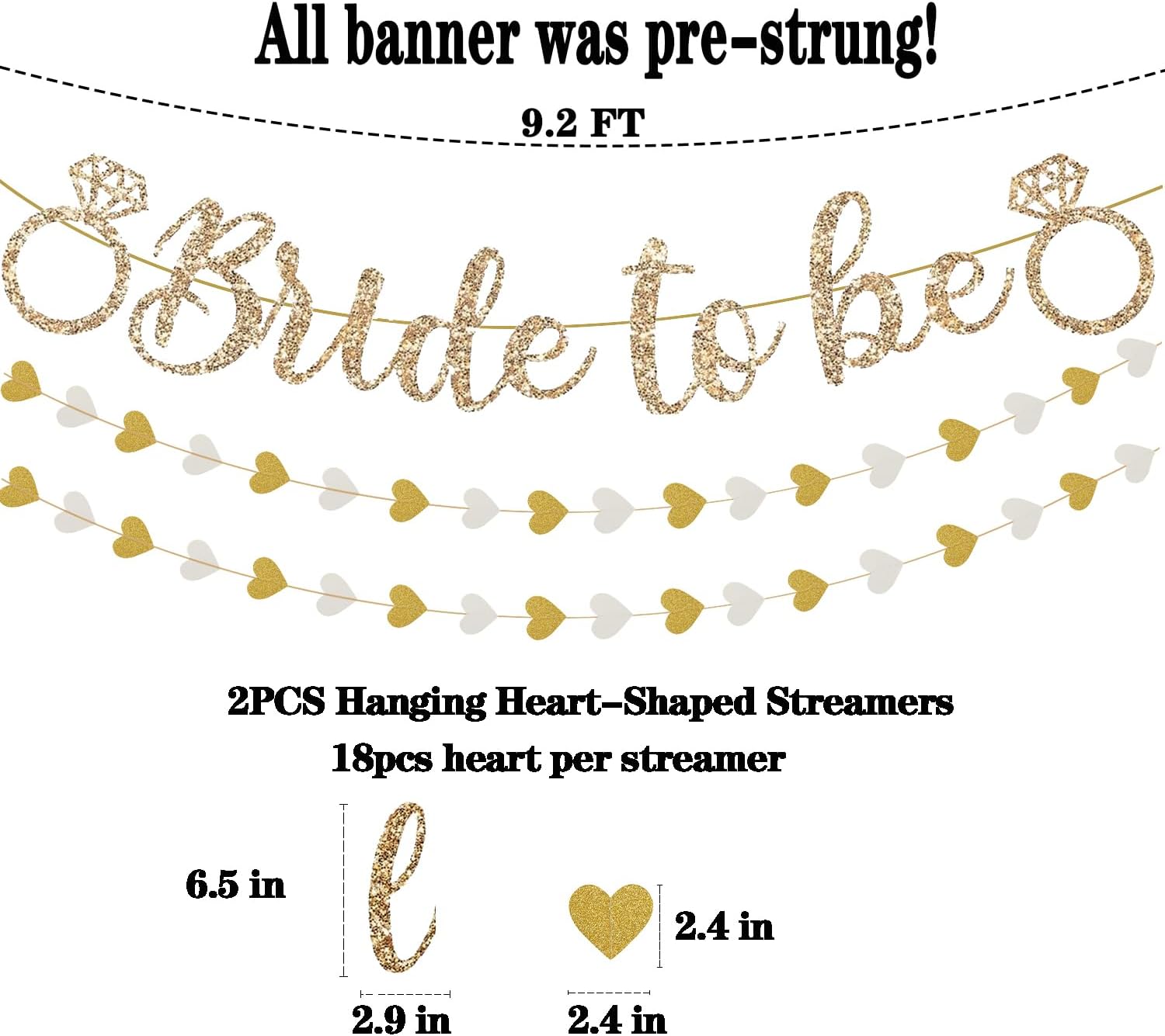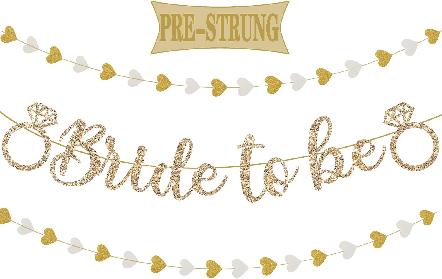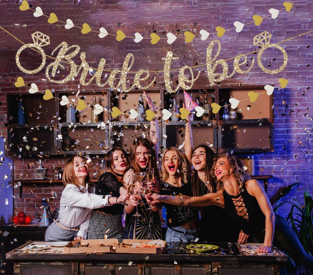 Pre-Strung Bride to Be Banner,Gold Glitter Banner Sign with 13FT Heart Streamers Garland for Bachelorette Party Decorations,Bridal Shower Wedding Engagement Hen Party Decorations Supplies