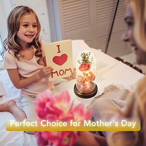 Preserved Flower Gift, Light Up Rose in Glass Dome, Eternal Forever Rose Flower Gifts for Her, Grandma, Mothers Day, Valentines Day, Anniversary, Birthday, Christmas Decorations, Rose Pink