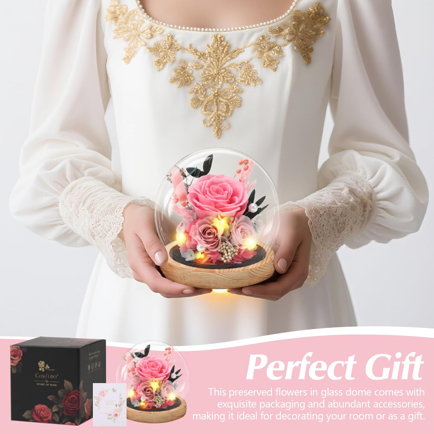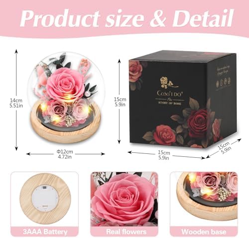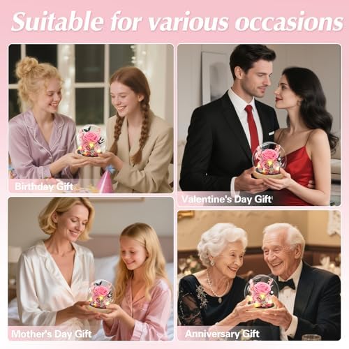 • Elegant Packaging & Gift-Ready: Each glass dome rose is carefully packaged with a beautiful gift box, and also comes with a greeting card. Whether you’re looking for a Valentine’s Day gift for women, a gift for your girlfriend, a present for your wife, a Mother’s Day gift for mom, a mom gift from her daughter, a grandma gift or as flowers for delivery prime birthday gifts, this is the perfect choice for her