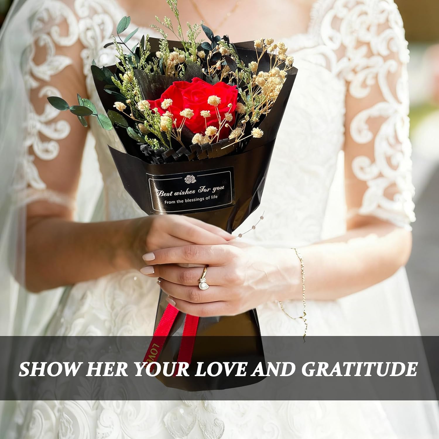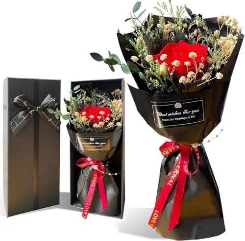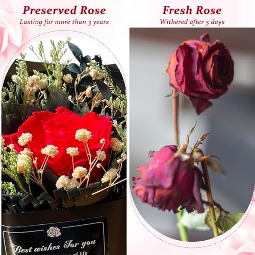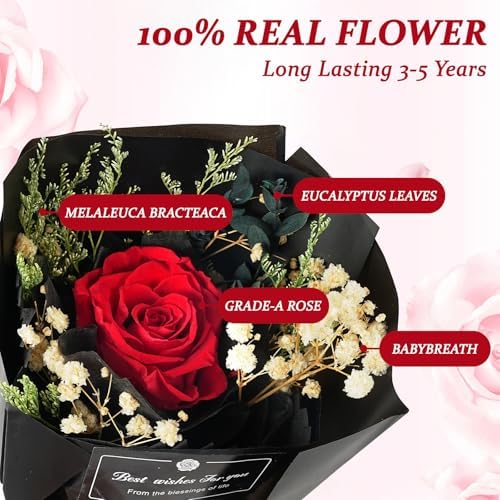 • 【Last 3-5 Years】Preserved red rose flowers bouquet is made from carefully selected premium blooms and preserved with advanced technology to maintain its color, texture, and beauty for 3-5 years. 100% fresh-cut red rose preserved at bloom— no watering, no maintenance. Enjoy “forever flowers” beauty year after year.