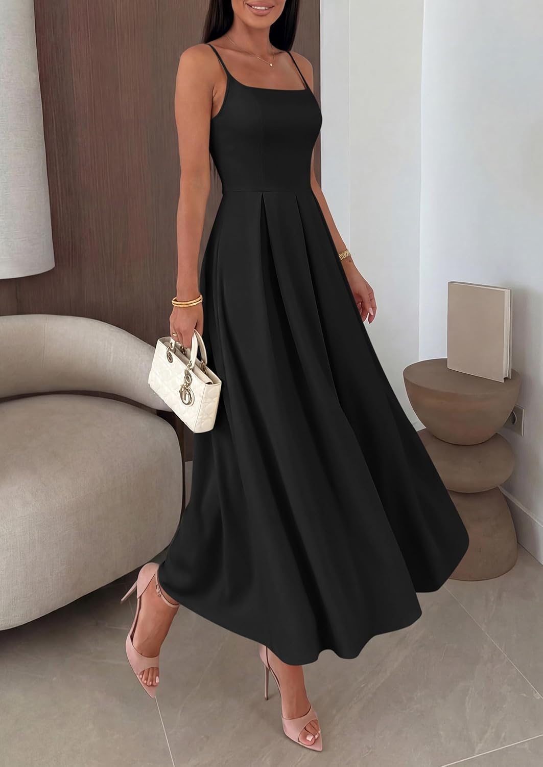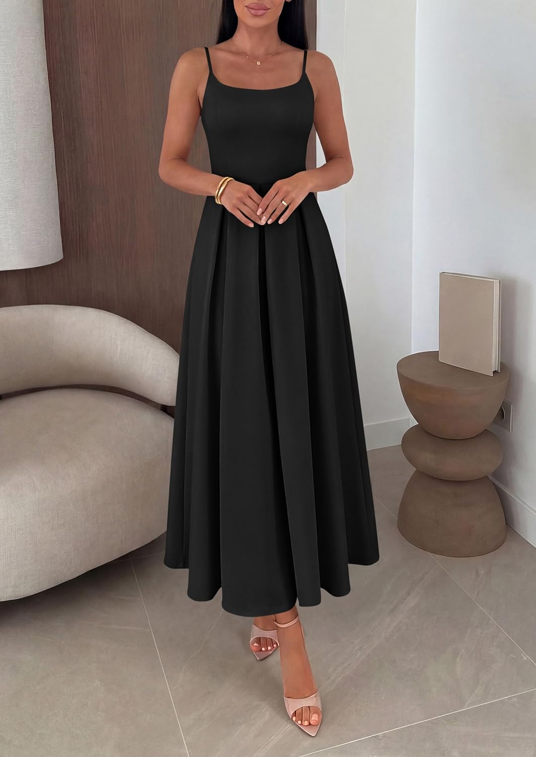 - Elegant Design: The fit and flare dress features a flattering fit that complements various body types. The classic A-line silhouette features delicate spaghetti straps and a graceful ruffle detail that adds movement and sophistication