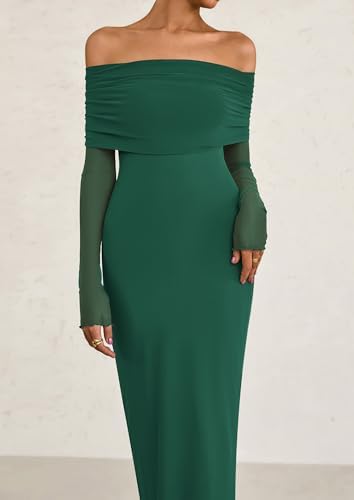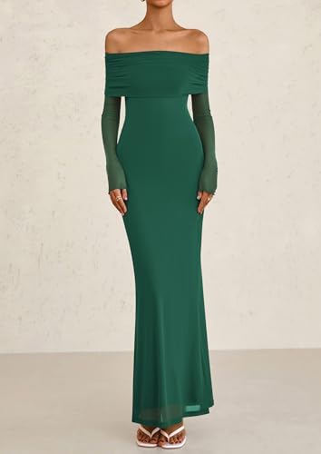 PRETTYGARDEN Fall Dresses for Women 2026 Elegant Off The Shoulder Long Sleeve Formal Wedding Guest Bodycon Maxi Dress