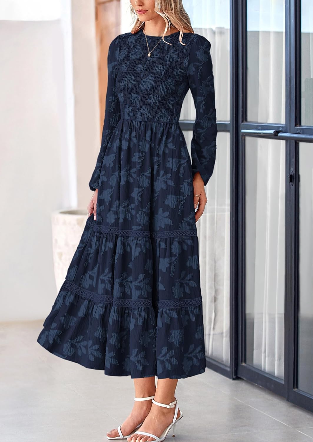 - ELEGANT FALL DRESS: Designed with The Modern Woman in Mind, Womens Smocked Midi Dress Is Ideal for Wedding, Cocktail, Party, Holiday, Date Night, Going Out, Travel, Vacation, Work, Church, etc
