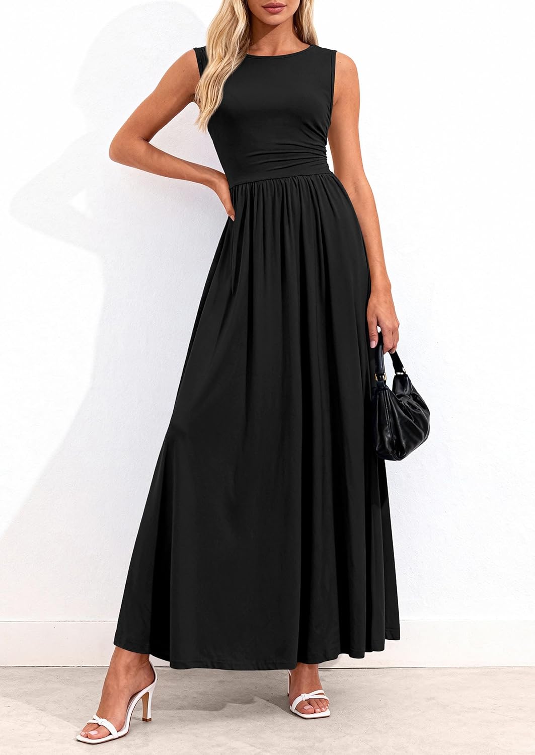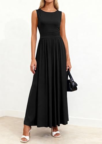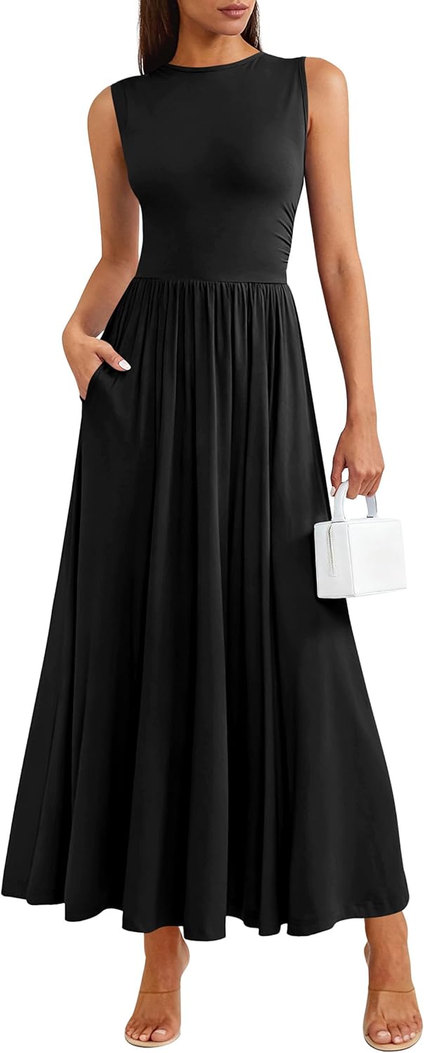 - FEATURES: maxi dress with pockets; crewneck sundresses for women; elegant flowy dresses for women; a line dresses for women; asymmetrical ruched dresses for women; fit and flare dress for women; plain sleeveless dress for women; casual dresses for women