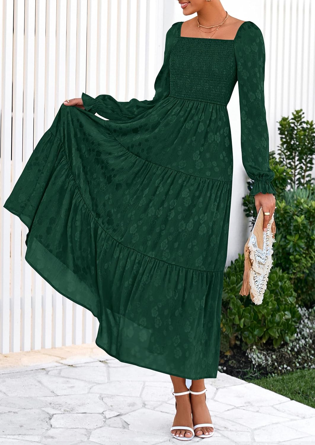 - Unique Features: Boho dress for women drapes beautifully, creating an ethereal look for any occasions. The stretchy smocked bodice gives a cozy fit while adding a touch of romantic charm to this long flowy dress