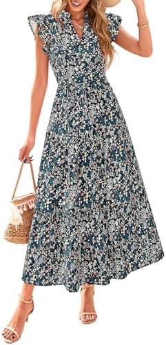 - STYLISH DETAILS: Cute Dresses for Women Designed with Delicate Pattern, Elegant V Neck, Playful Cap Sleeve, Elastic Back Waist, Swing Tiered Hemline, A-Line Silhouette and Convenient Side Pockets. Bohemian Dress for Women Ensures Both Comfort and Style