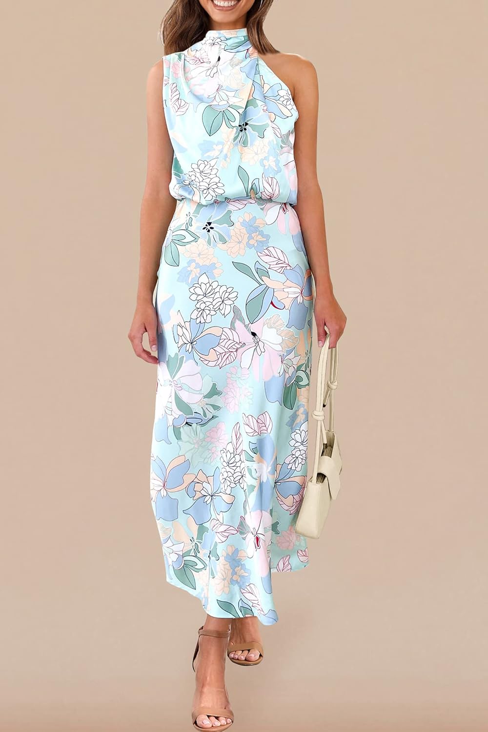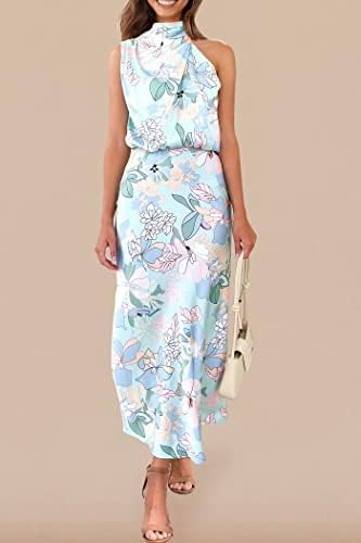 - CHIC FEATURES: The Satin Maxi Dress Features In Mock Neck Style, Bring Out Your Elegance And Femininity. Women Silk Dress With Elastic Waistband Keeps You Cozy All Day Long. The Unique Irregular Shoulder Design Highlights Your Delicate Collarbone. This Sleeveless Summer Dress Modify Your Figure Well, Ideal For Almost Body Shape. The Plain Flowy Dress Is Simple Yet Graceful, Creates A Stunning Feel.