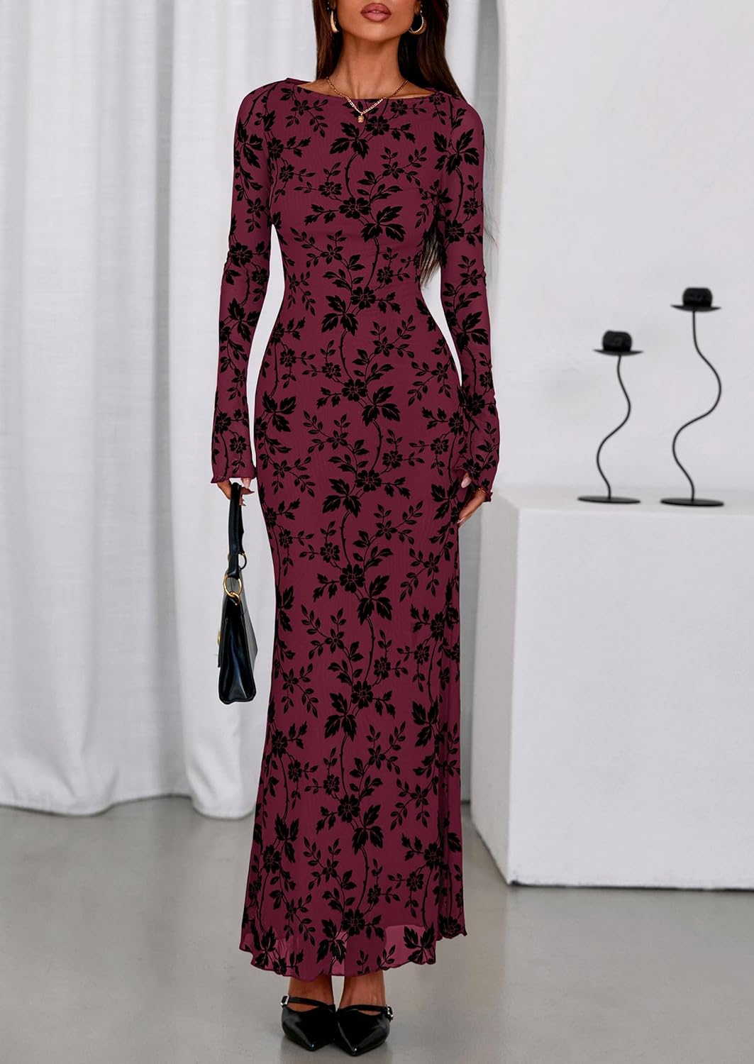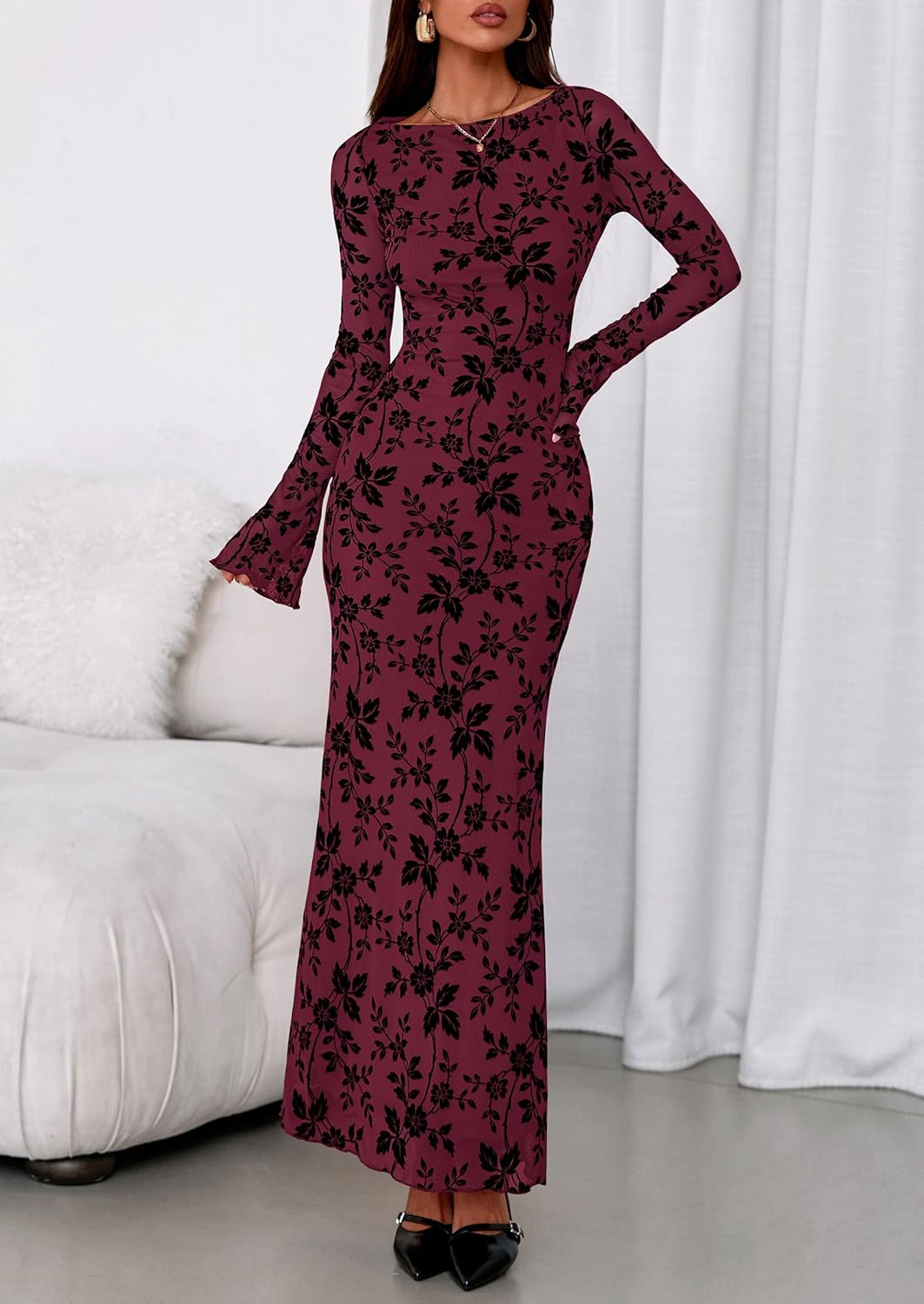 - Modest Style: Bodycon dress for women features a stunning floral design, exuding timeless femininity. Long dresses for women hugs your curves in all the right places while the maxi length adds graceful movement
