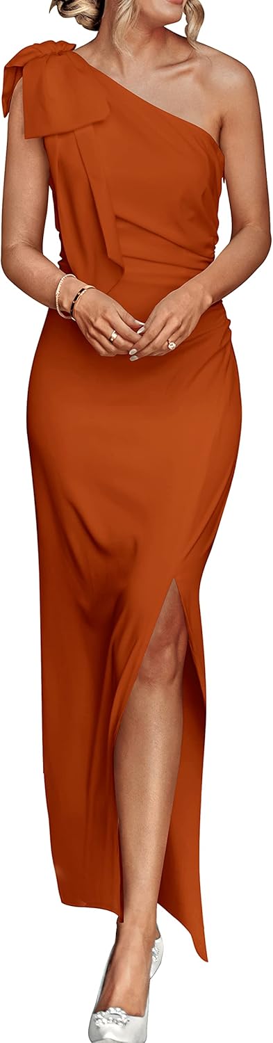 - DRESSES FOR WOMEN PARTY ELEGANT! One Shoulder Dress With A Bow Design, Which Can Perfectly Block The Thick Arm. There Is A Split Design On The Thigh, Which Highlights Your Slender Legs. When You Walk, It Can Perfectly Show Off Your Long Legs. The Maxi Dress Falls Right On The Floor, Accentuating The Elegant And Dignified Atmosphere Of The Dress. Empire Waist Dress With Ruched At The Side, A Chic Design To Make You More Sexy And Charming