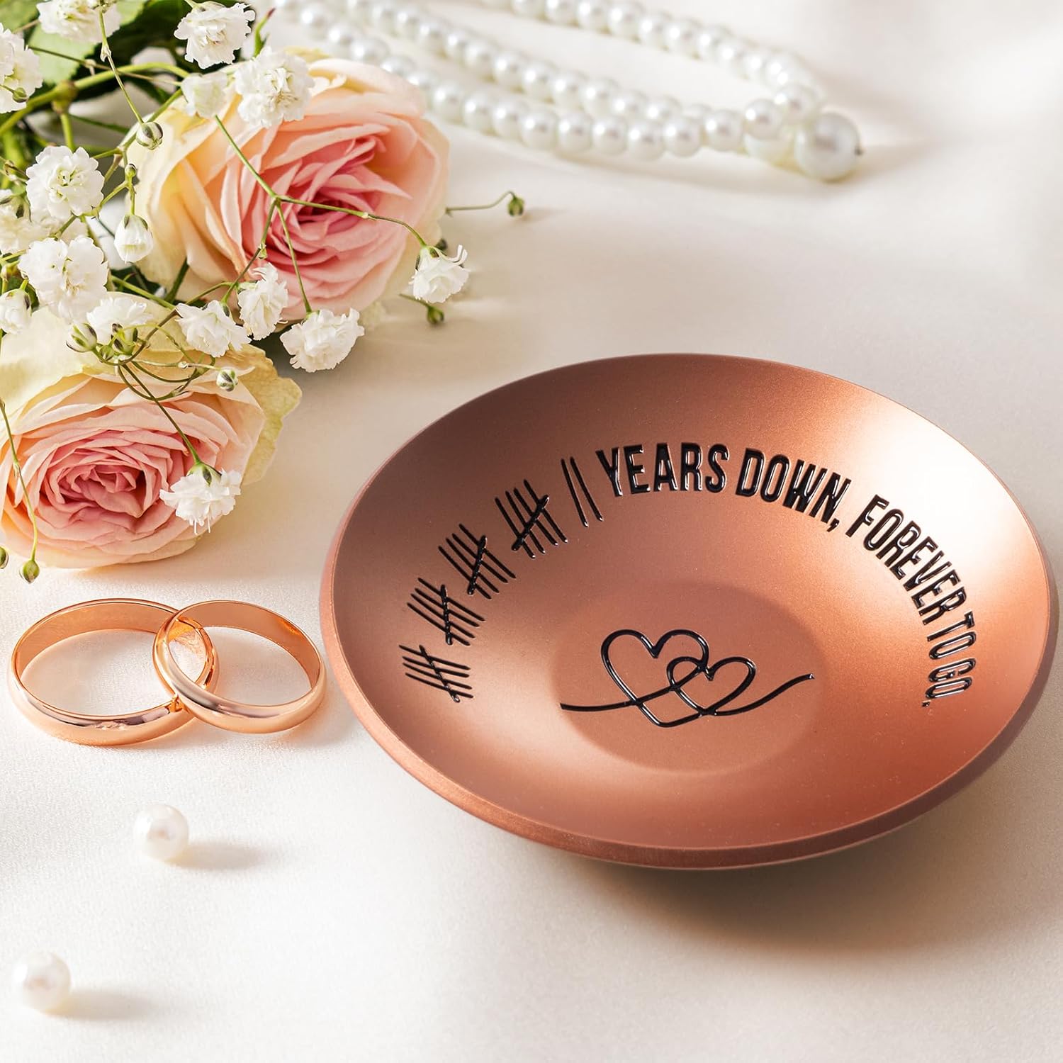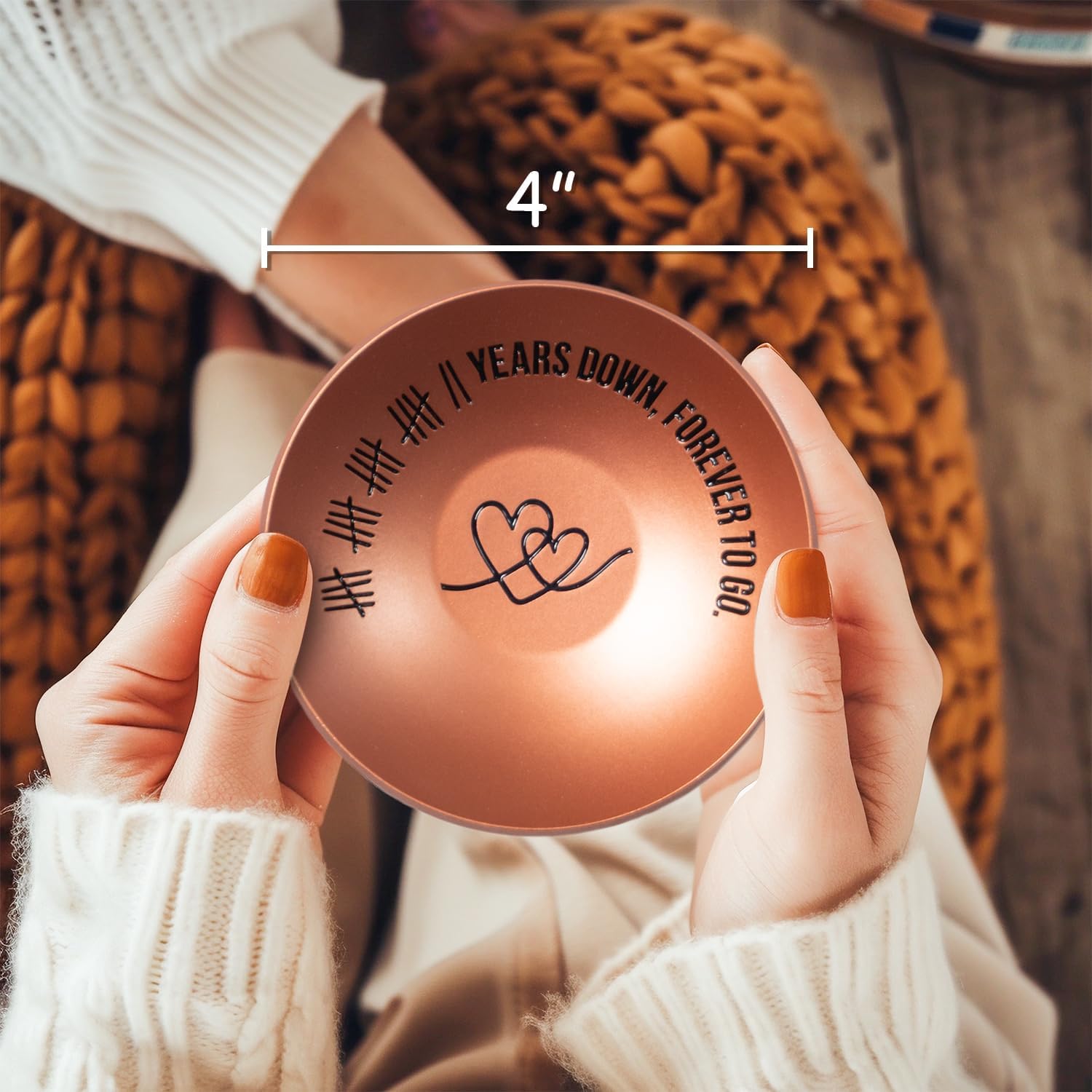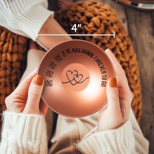 • Great 22 Year Anniversary Copper Gifts: This 22nd anniversary gift for her jewelry dish is made of copper and engraved with “卌卌卌卌 || Years Down, Forever To Go”, strong, sturdy, never ends and never fades. Great 22nd wedding anniversary gift for him/her.