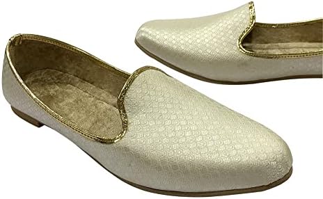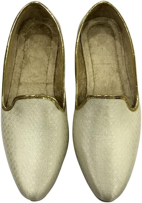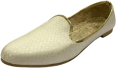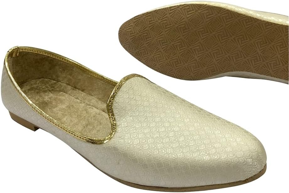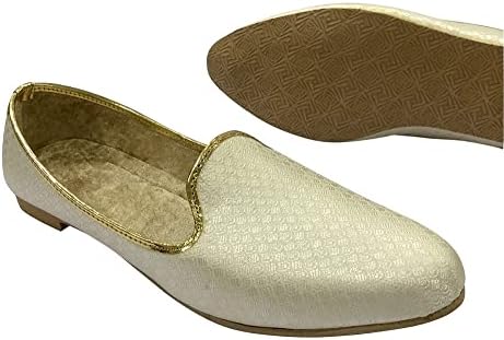Punjabi Mojaris Mens Shoes Cream Wedding for Groom,Traditional Indian Footwear Ethnic Peshawari Slippers