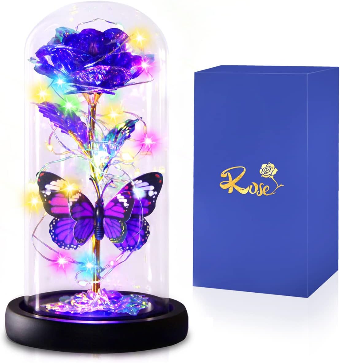 Purple Butterfly Rose Flower Birthday Gifts – Women Gifts for Her Mothers Day Valentines Anniversary Christmas Thanksgiving – Light Up Rose Flower Gifts for Mom Wife Grandma Girlfriend Daughter Sister