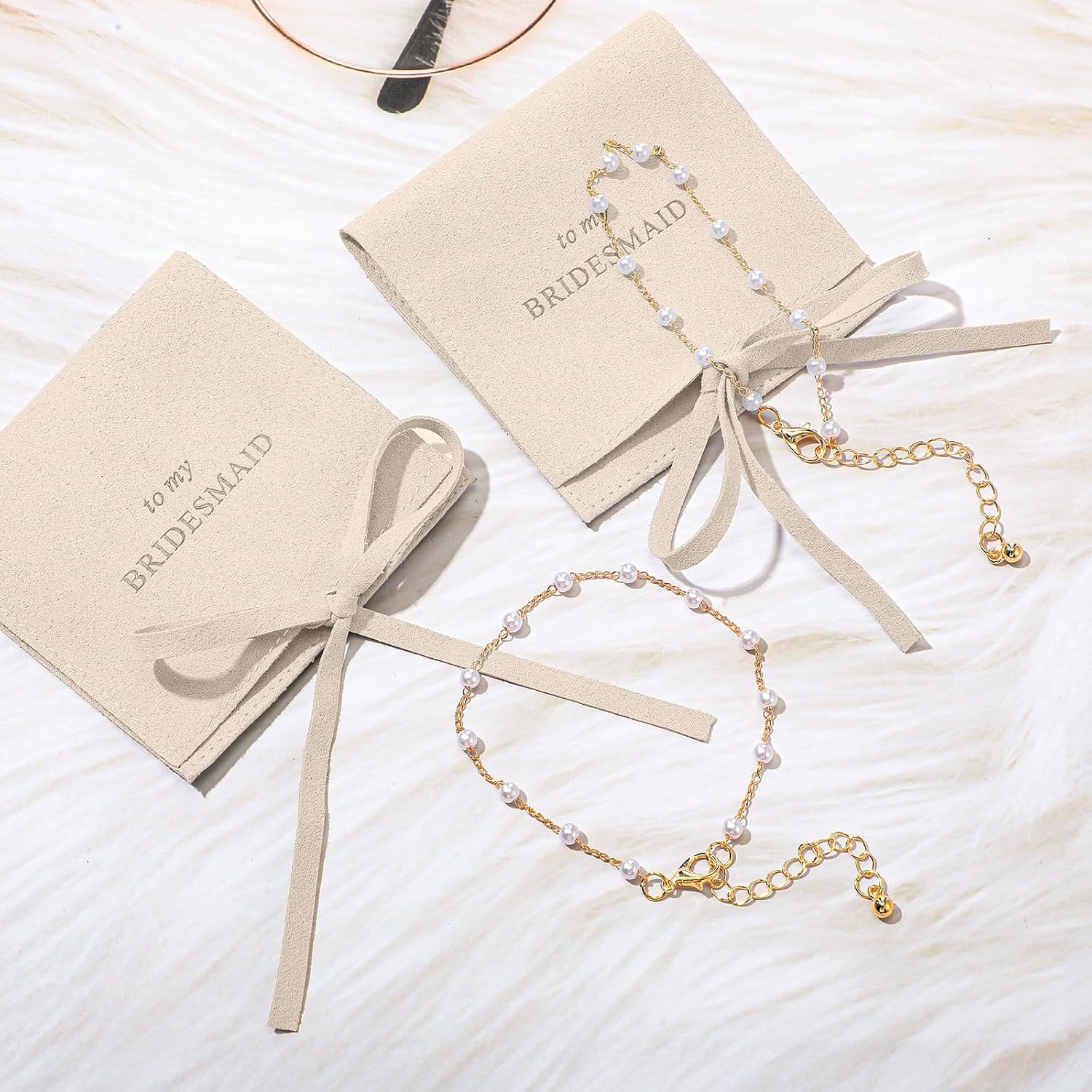 - Classic Design: this bridesmaid bracelets are about 7.9 inches/ 20 cm in total, and made of Zinc alloy with gold plating, ensuring durability and a long-lasting shine; Jewelry bags measures about 3.15 x 3.15 inches/ 8 x 8 cm, and made of Suede; Designed with strings to fasten and loosen freely, our microfiber pouch is easy to close and open, making you more charming and gorgeous, really a big hit to the street shopping