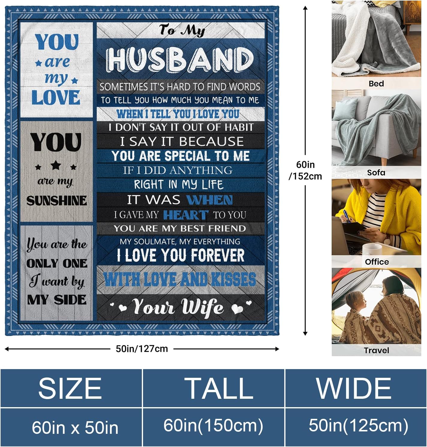 - Gifts for Husband: This blanket is a thoughtful gift for your husband, it shows love for my husband” Sometimes it’s hard to find words, to tell you how much you mean to me when I tell you I love you. You are my best friend, my soulmate, my everything. I love you forever.”