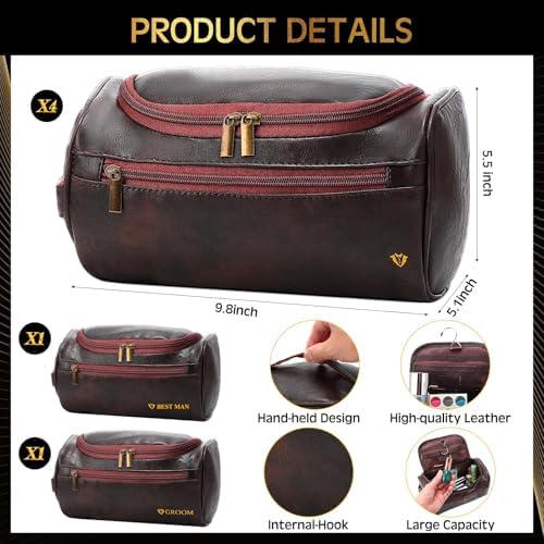 - Proper Size: The groomsman box measures 8 x 8 x 4 inches, the PU leather toiletry bags are 9.8 x 5.5 x 5.1 inches, the shot glasses measures 1.6 x 4.1 inches, the bottle opener measures 2.1 x 3.3 inches, the sunglasses measure 5.6 x 5.7 inches, the gift bag measures 7.5 x 3.5 x 9.1 inches, and the socks are evenly sized to fit the vast majority of adult males