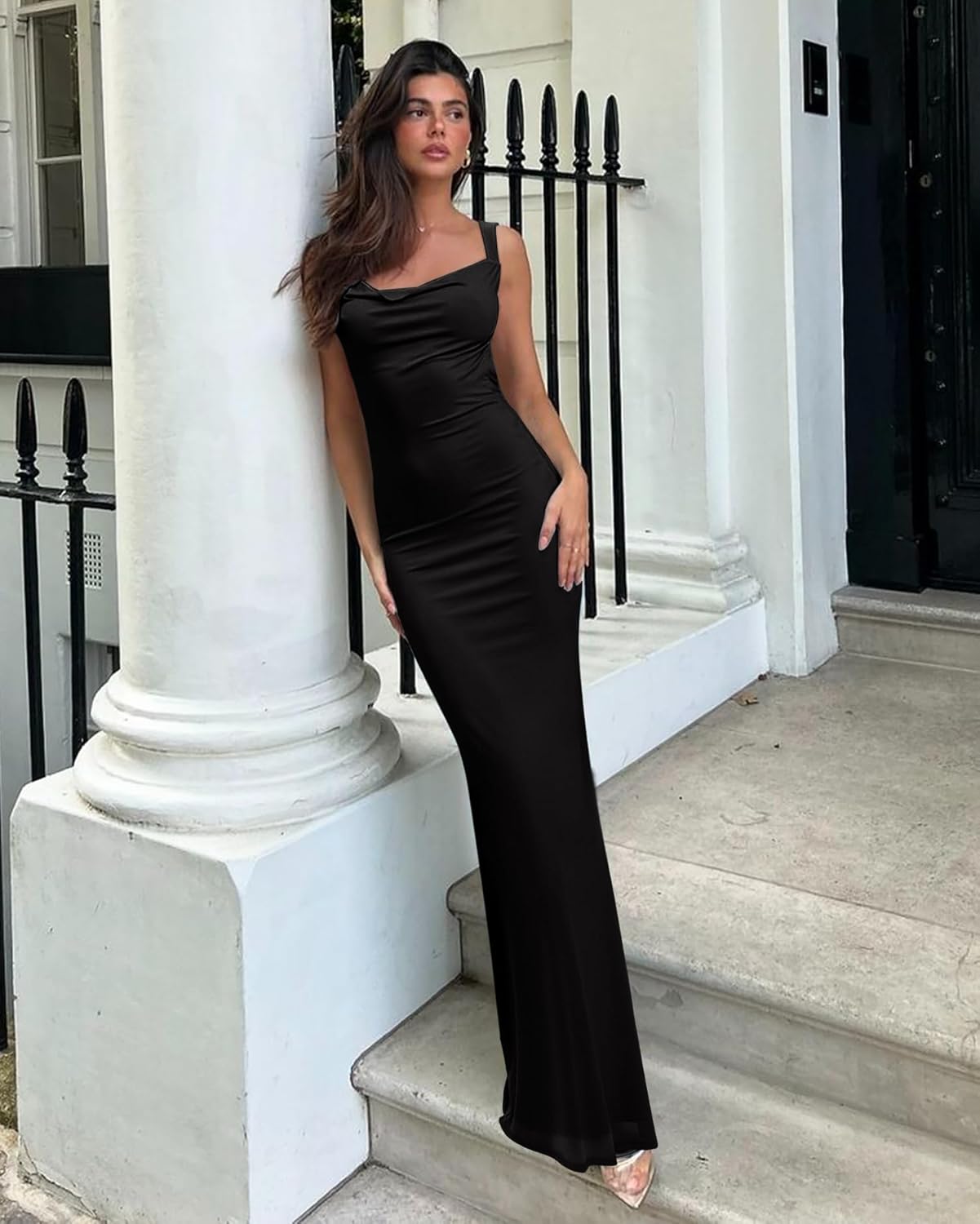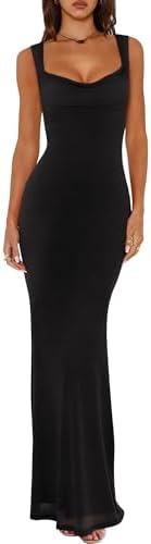 - 🌸This mesh maxi dres is slim cut design with flared bottom that shows the hourglass body curves for a confident mermaid look. Beautiful cowl necklined, this sleeveless dress highlights your sexy collarbones and charming cleavage.