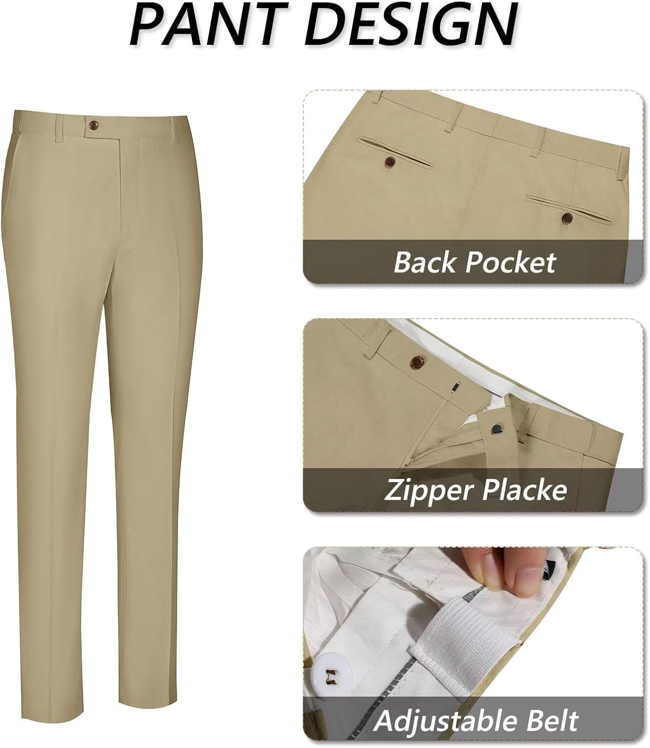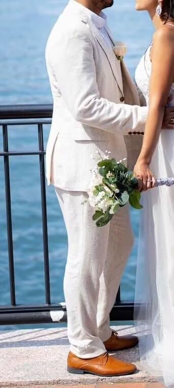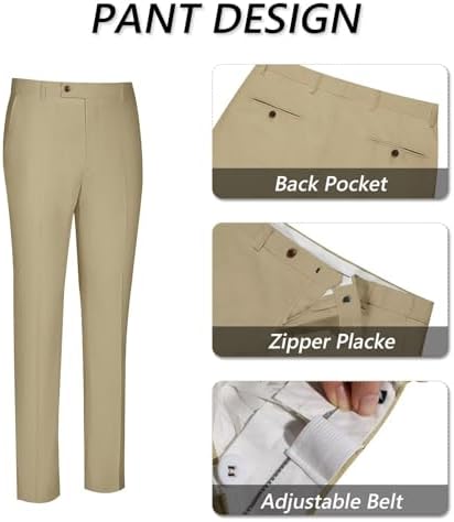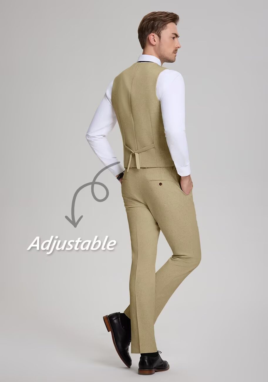 - Classic 3-Piece Linen Suit : Single-breasted jacket with notched lapel, two front flap pockets,and one inside pocket;Double vents at the back for added comfort and style; Men’s dress trousers designed with a zipper fly, adjustable waist tabs, and two genuine rear pockets.