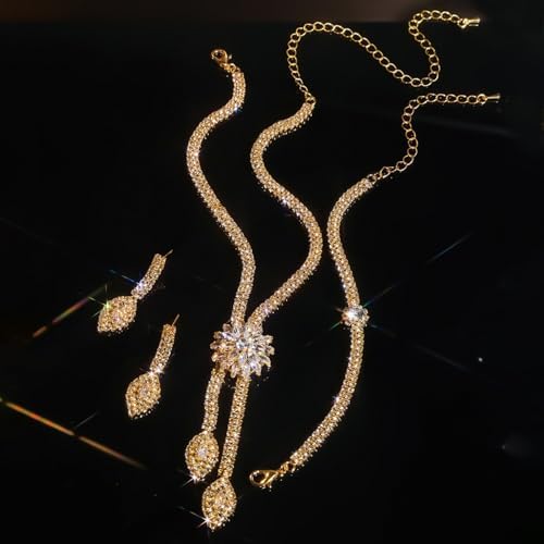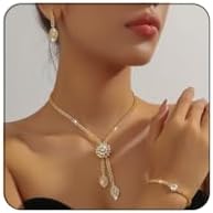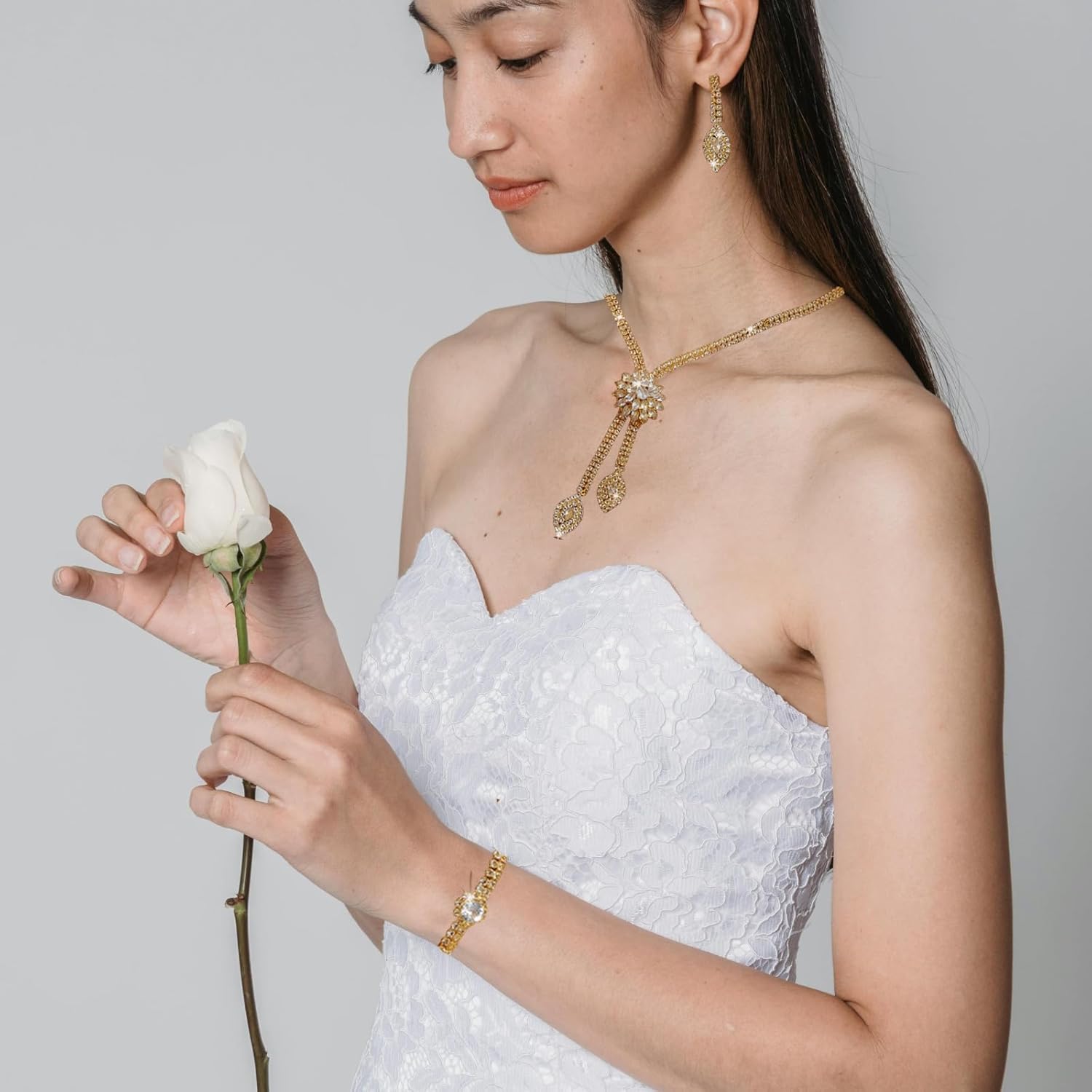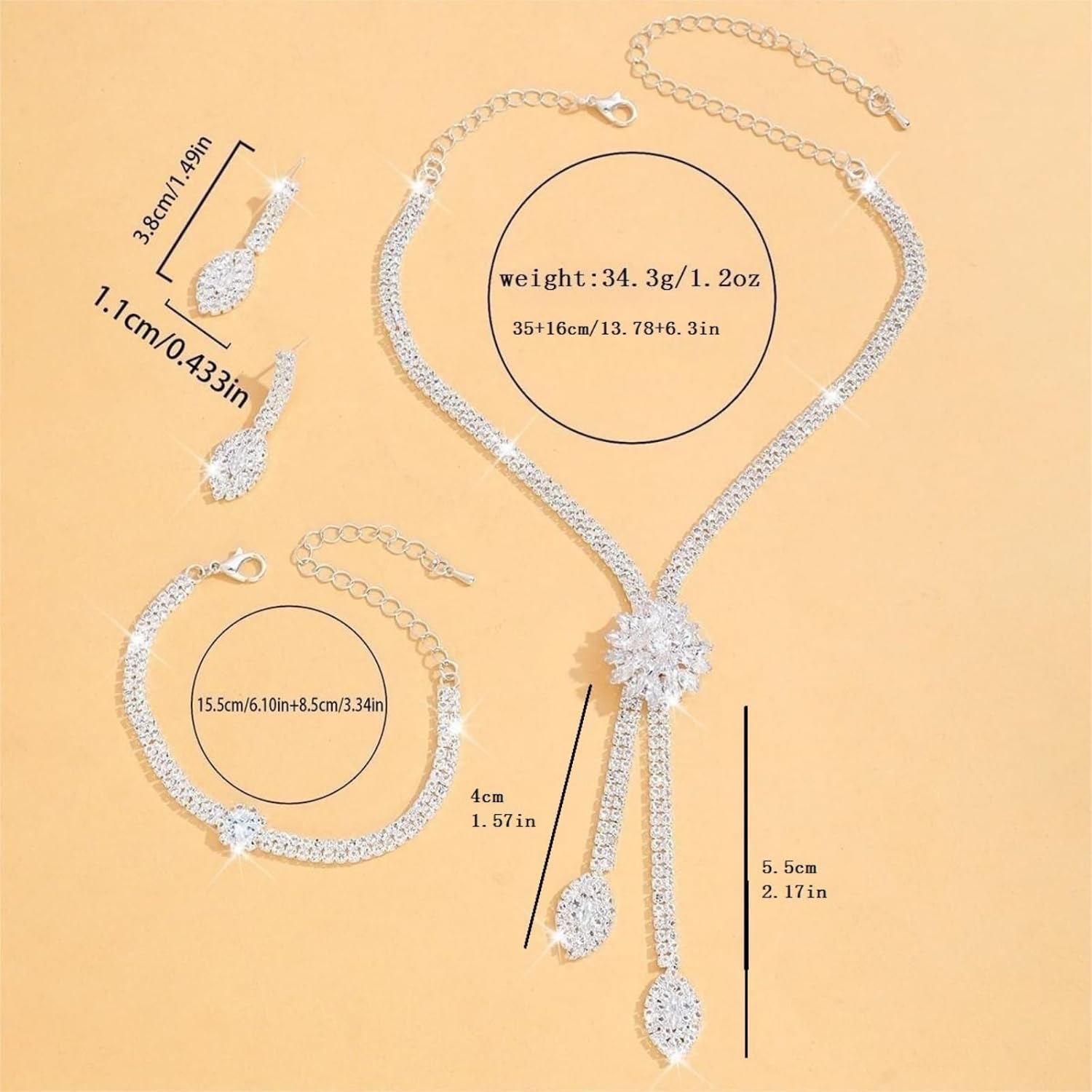 - Matching:This classic crystal necklace,earrings and bracelet set can be paired with formal gowns,wedding dresses,art exhibition outfits,and everyday elegant clothing.Wearing it will enhance your charm