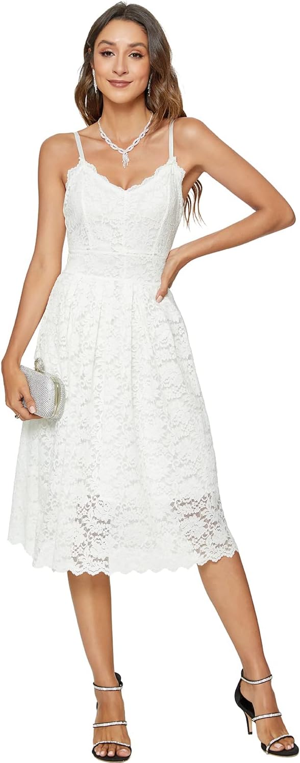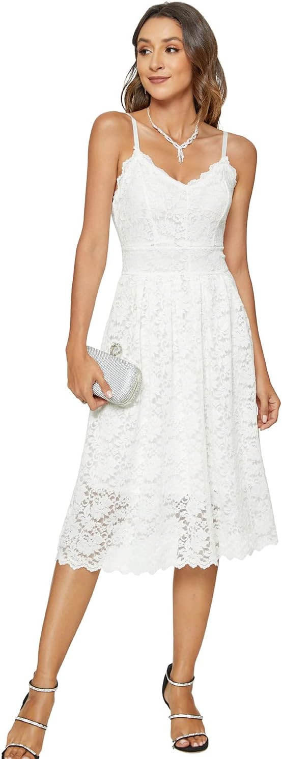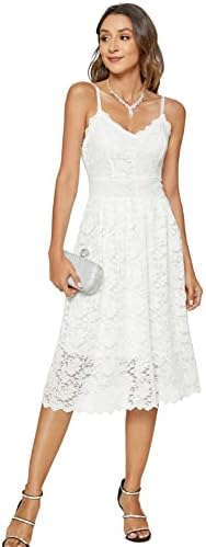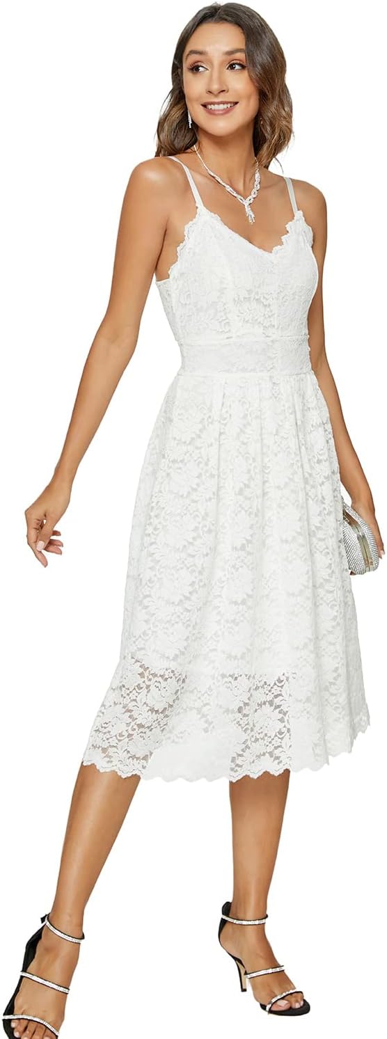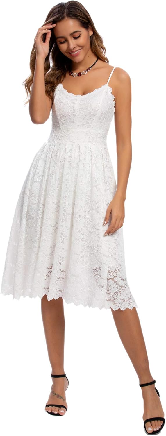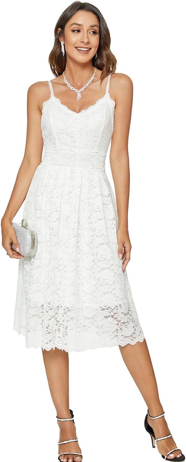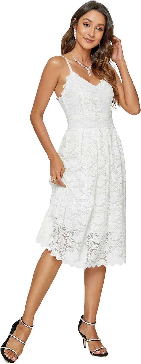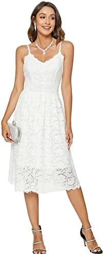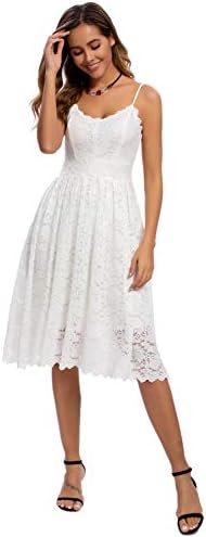 - Swing dress Style: Sleeveless spaghetti strap, v neck, below knee length, full floral lace overlay, hidden back zipper dress.