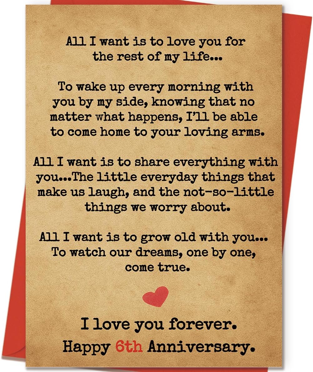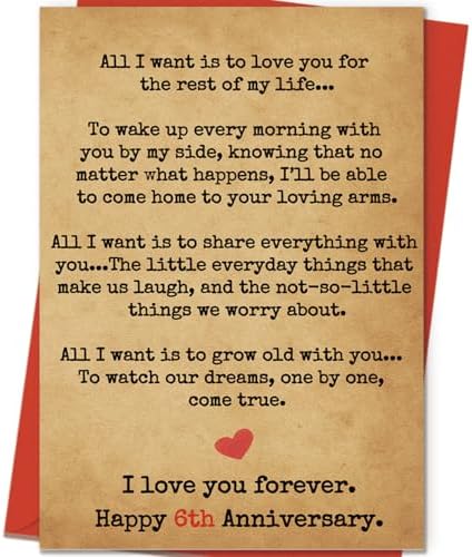 - Suitable for All Occasions of Love – Whether celebrating a 6th wedding anniversary or a 6 year relationship milestone, this card is perfect.
