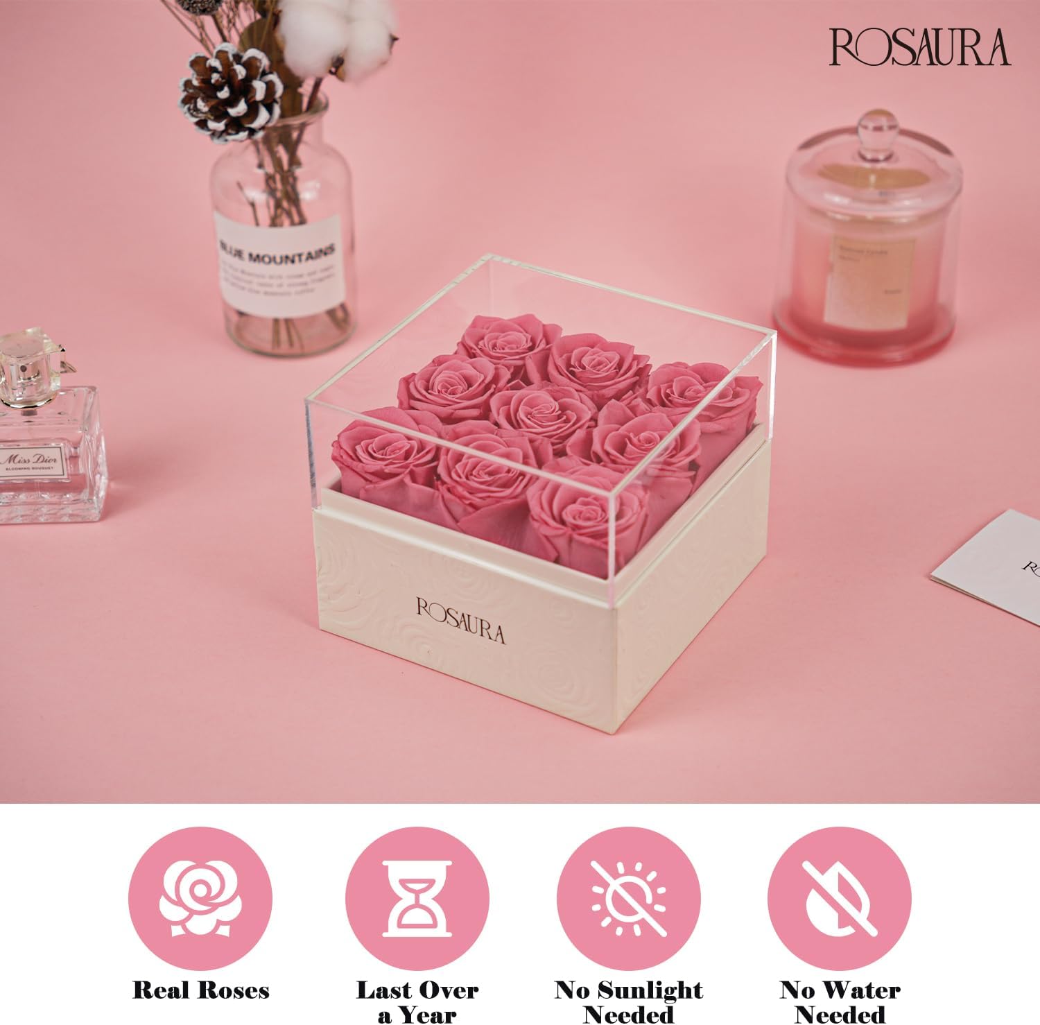 • 🚀Our preserved flowers feature reinforced packaging. Using advanced dehydration methods, these forever flowers retain petal texture without watering or sunlight exposure.