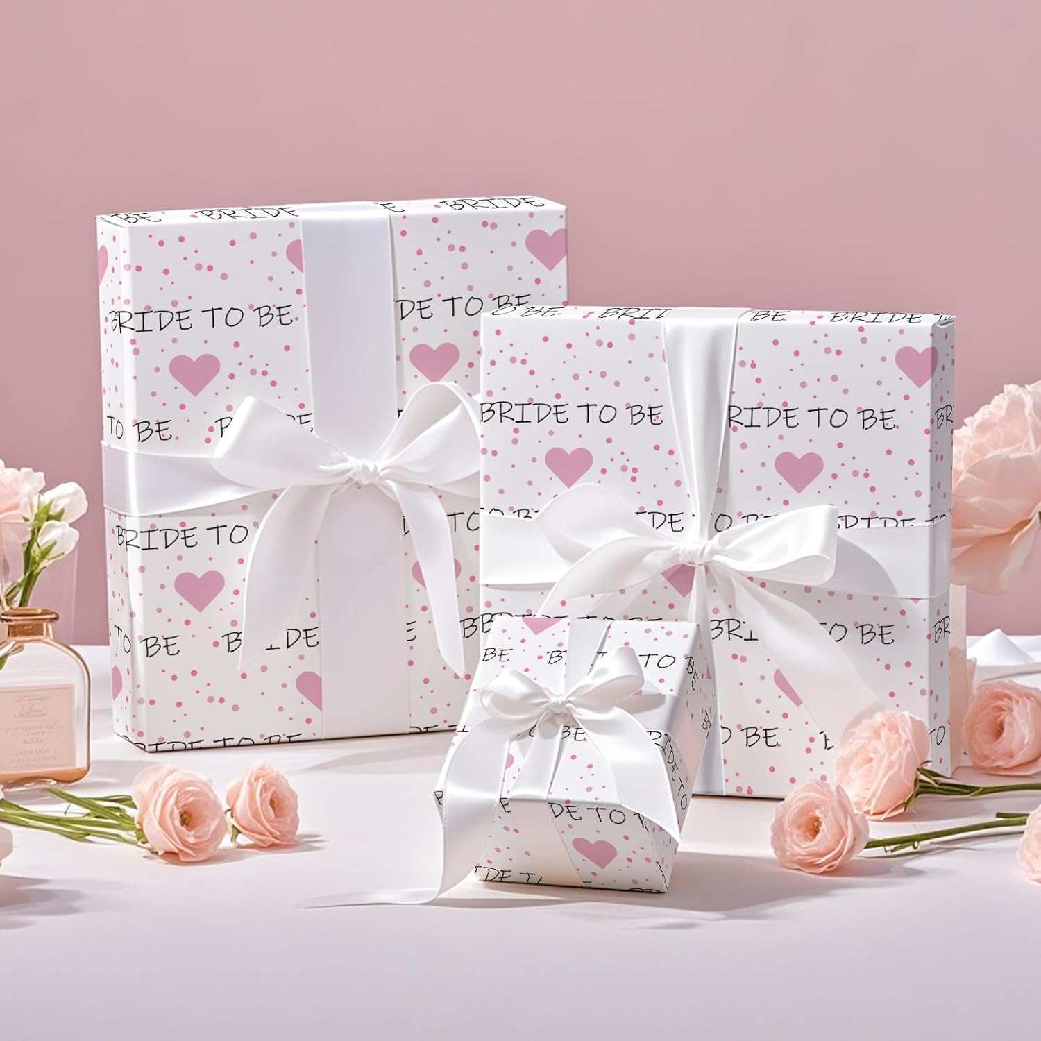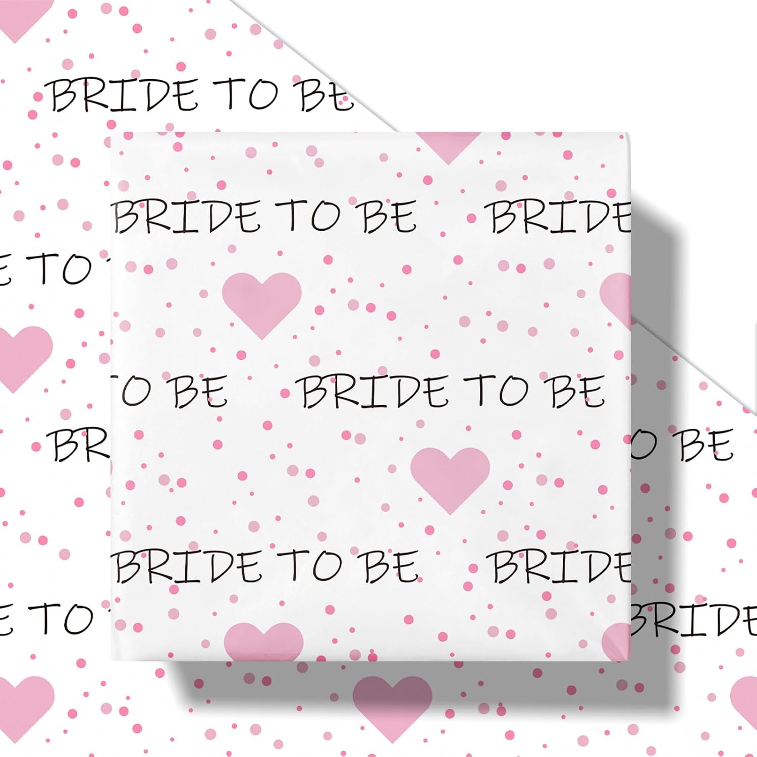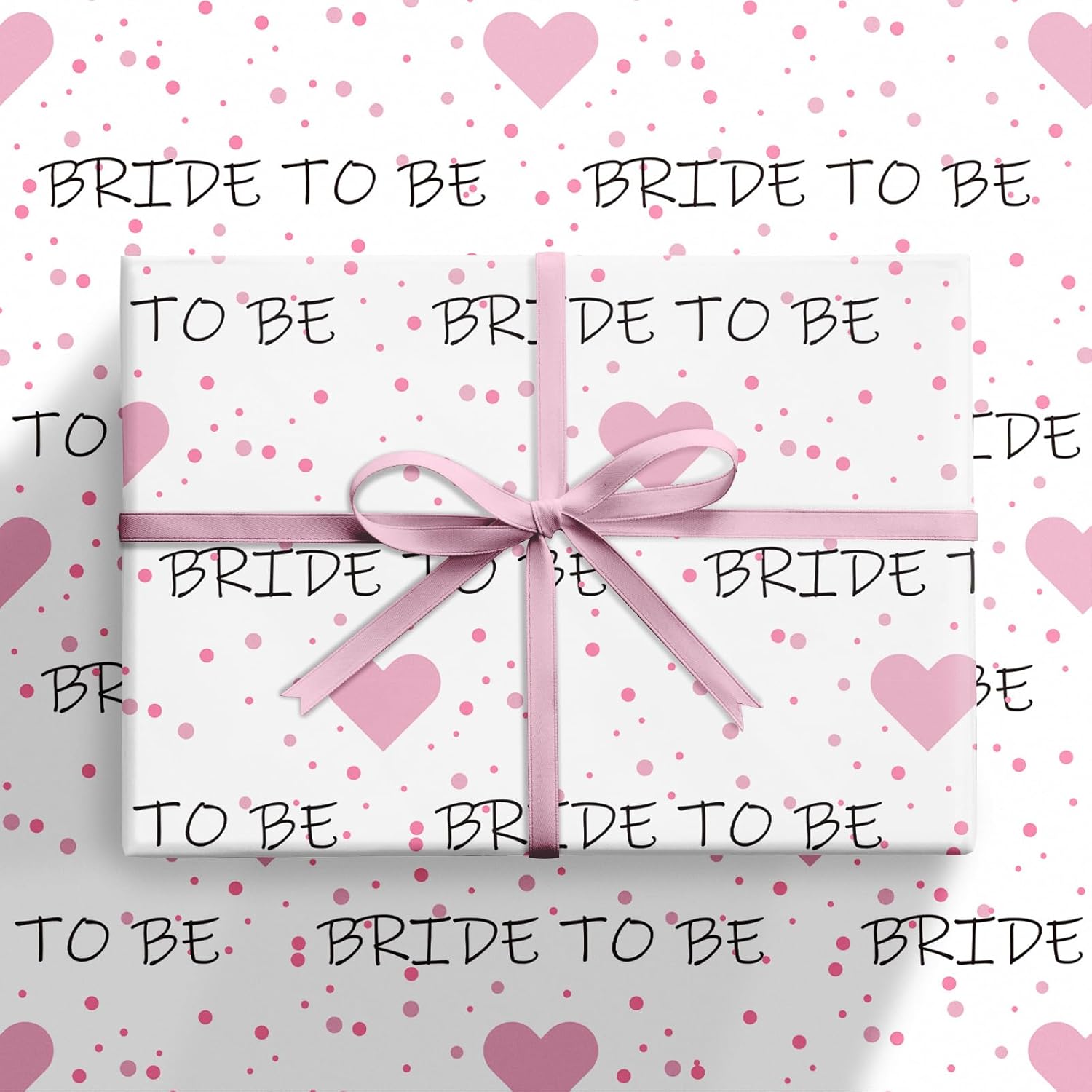- Playful and Romantic Design: This wrapping paper features the fun and elegant “BRIDE TO BE” text paired with cute pink hearts and playful dots. Perfect for celebrating the bride-to-be at bridal showers, bachelorette parties and weddings