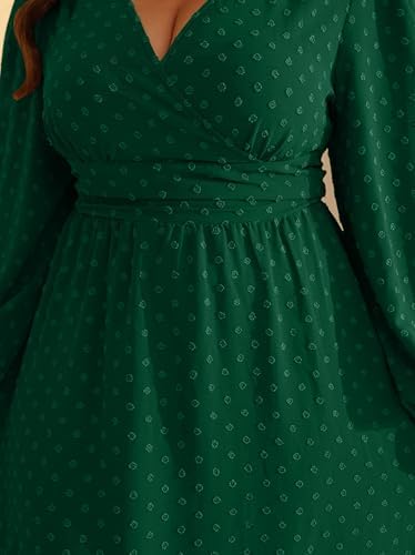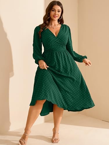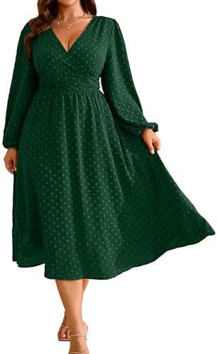 RWJ Womens Plus Size Fall Wedding Guest Dress Wrap V Neck Swiss Dot Lantern Long Sleeve Swing Boho Casual Dresses