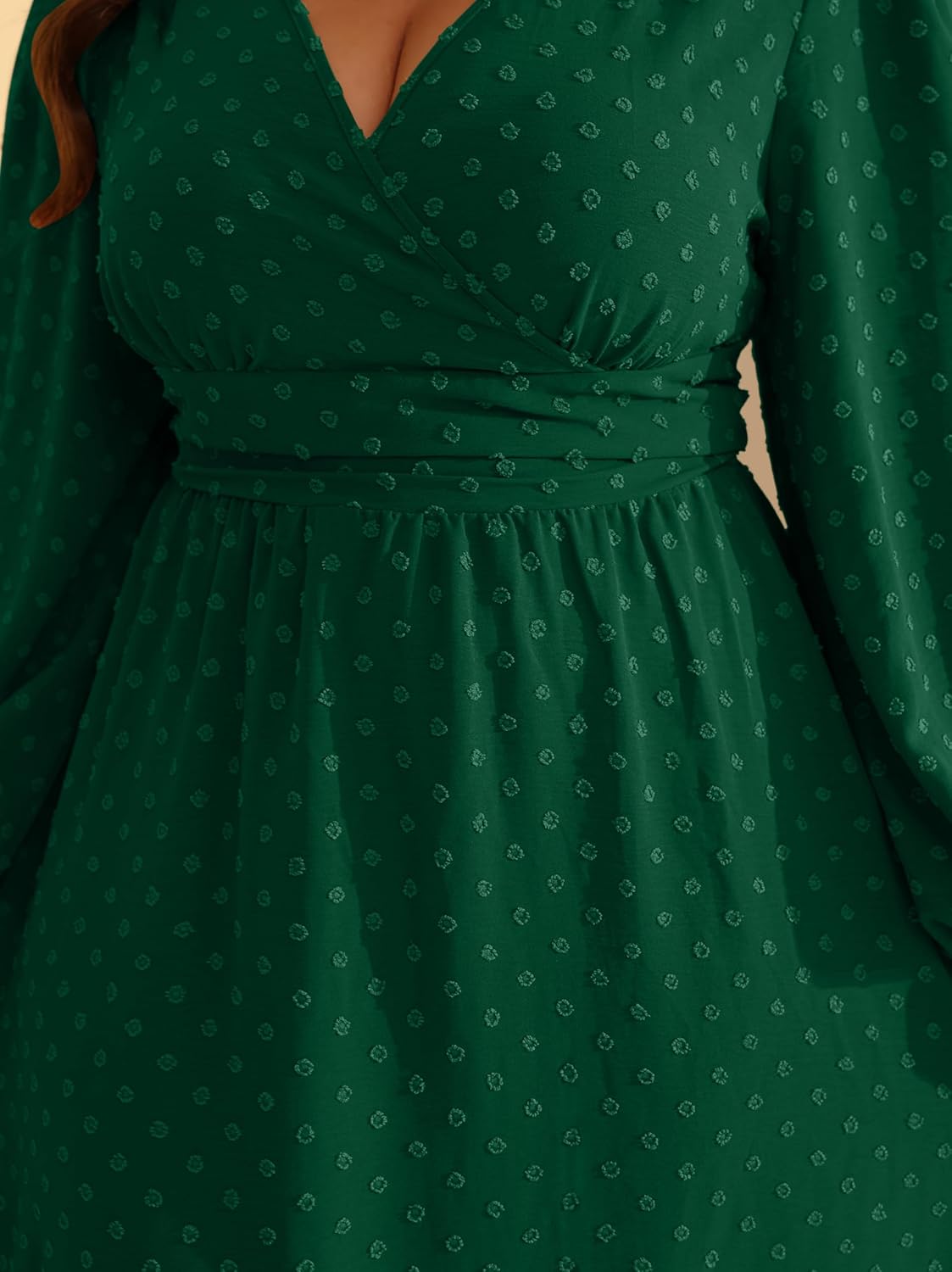 • Features: Wrap V-Neck/ Lantern Long Sleeve/ A Line/ Elastic Waistband/ Swiss Dot Dress for Women/ Plus Size Maxi Dress/ Empire Waist Dress/ High Waist Long Dress/ Plus Size Dresses for Curvy Women/ Fall Dress for Women 2025/ Swing Boho Dress/ Plus Size Casual Dress