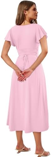 - ✦ Scoop Neck & Adjustable Back Tie–SAMPEEL Midi Dresses with adjustable back tie lets you tighten for a flattering silhouette or loosen for breezy comfort. Thick stretch waistband smooths tummy and moves with you all day. Flattering scoop neck highlights collarbones, offers breathable comfort, and pairs effortlessly from brunch to evening events — elegance made easy.