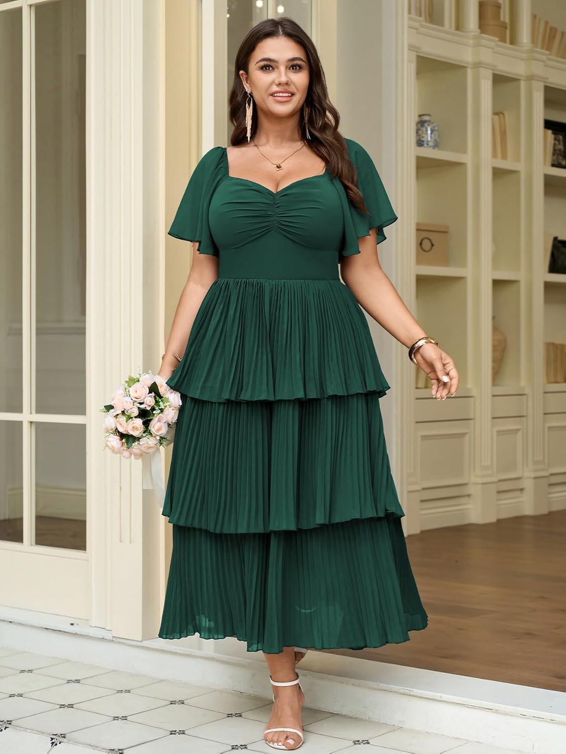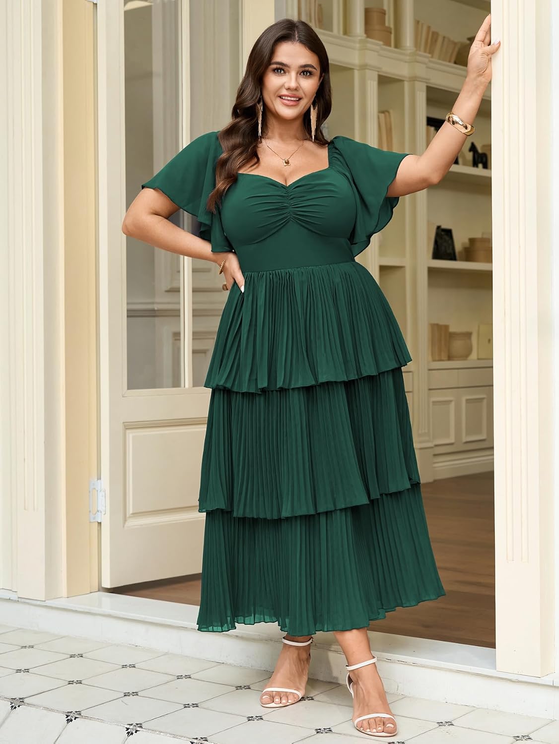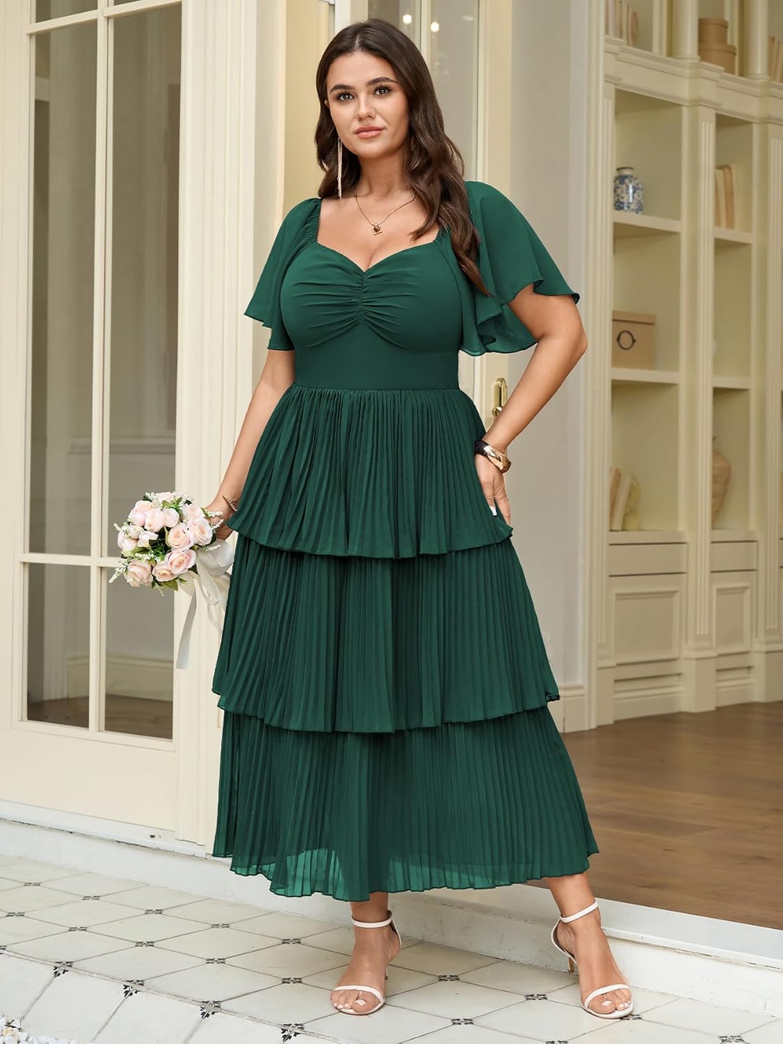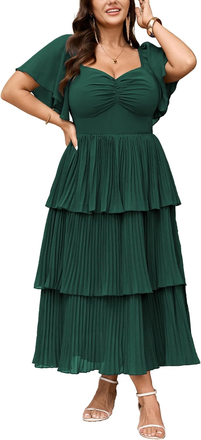 - Flattering Design for Curves: Plus size dresses for women specifically designed for plus-size figures, features a sweetheart neckline with a ruched bust and a high-waisted empire line,elegant tiered pleats. The exquisite pleated chiffon design adds depth and elegance, making it a standout piece for any formal event