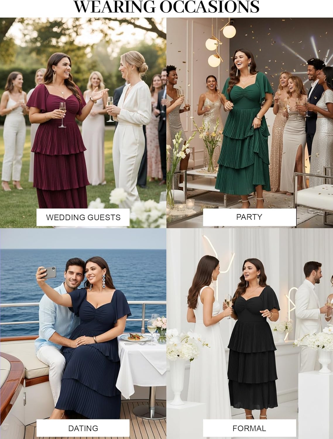 - Features: Plus size elegant dress, plus size cocktail dress, plus size wedding guest dress, formal wedding guest dress, plus size formal dresses for women, long bridesmaid dresses, plus size party dresses, plus size prom dress, plus size evening dresses, ruffle tiered pleated maxi dress, short sleeve dress