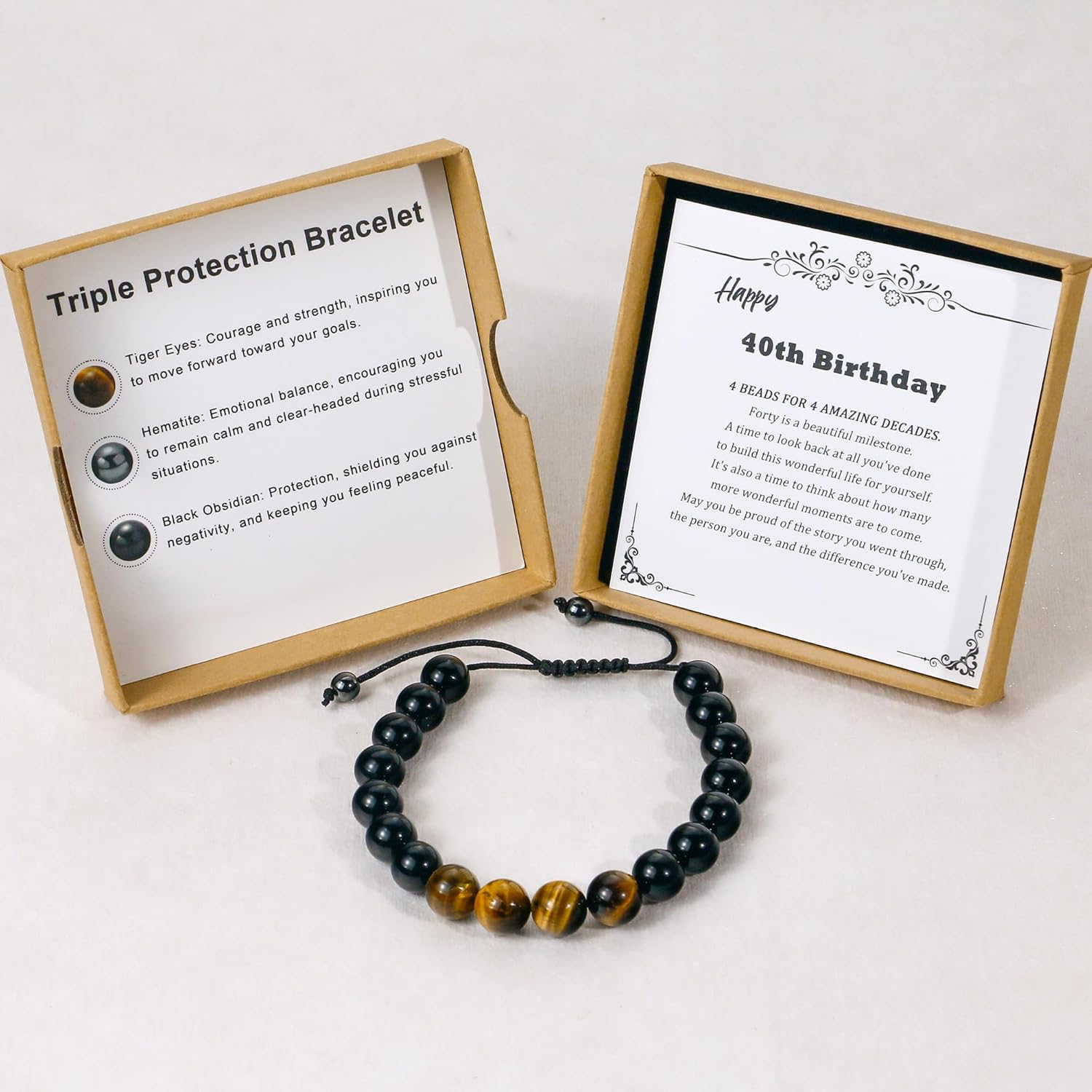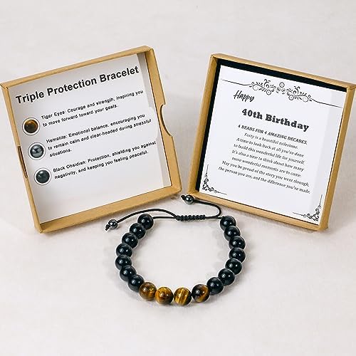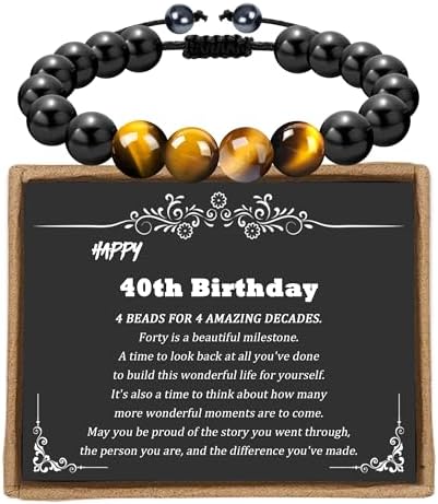 • 40th Birthday Gift Ideas: Obsidian and tiger’s eye as well as hematite have been used to protect people from negative effects and bring good luck. Give him this good wish on his 40th birthday, and every time he sees this bracelet,he remembers that your love is by his side.