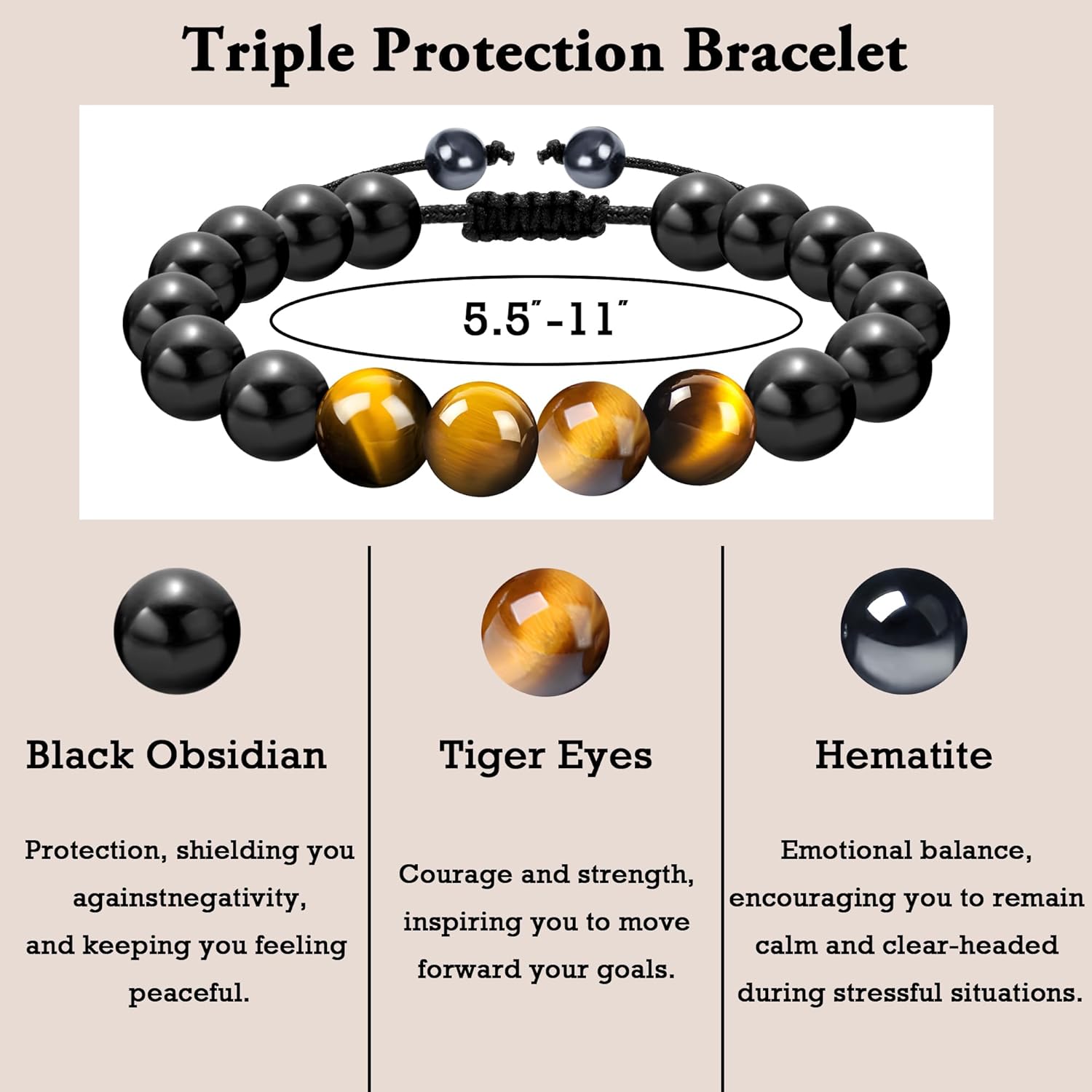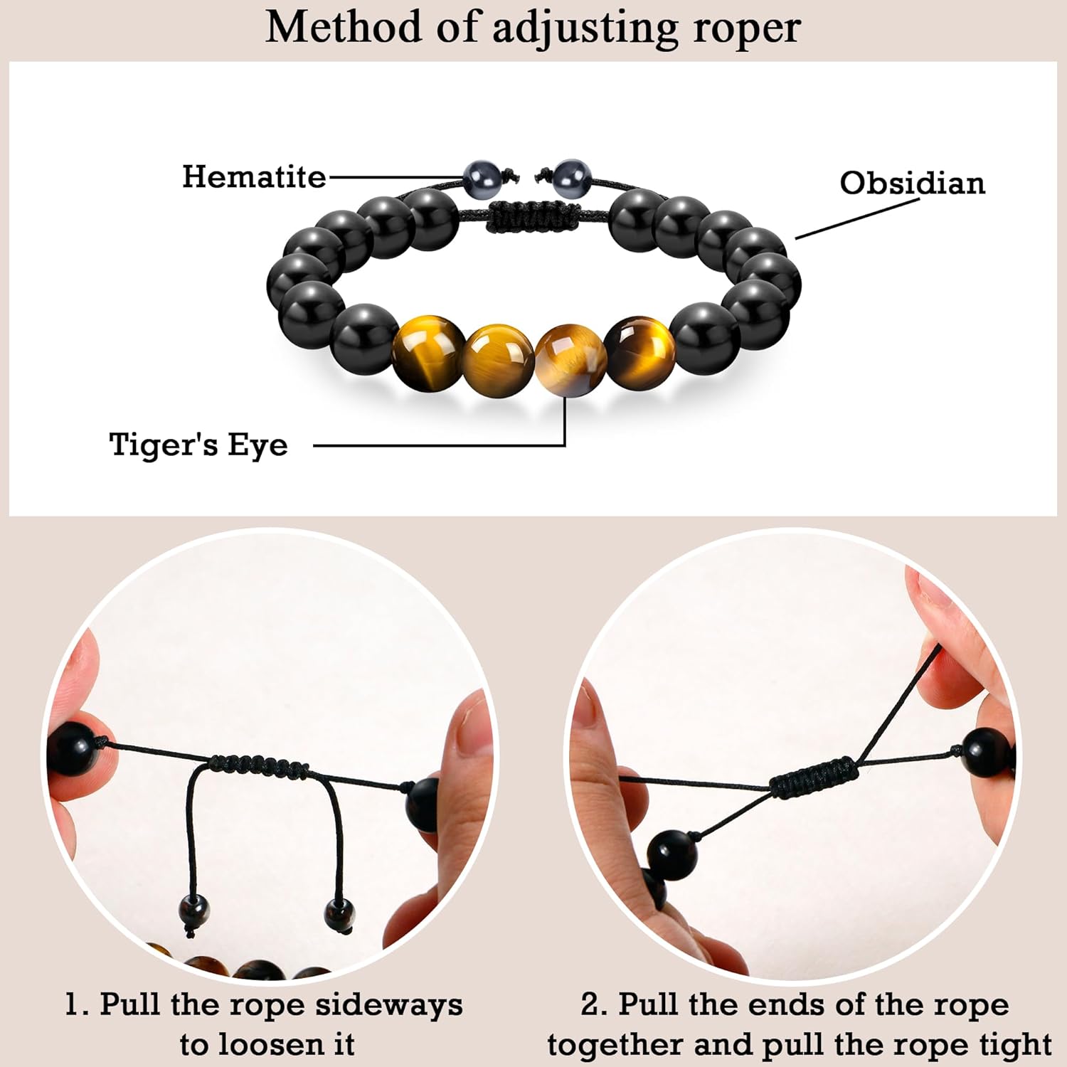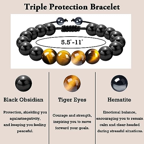 • High Quality Materials: Our men’s bracelets are made of natural tiger eyes Handmade with hematite and obsidian,and fitted with durable ropes,it is resistant to wear and tear,comfortable and meets long-term needs.