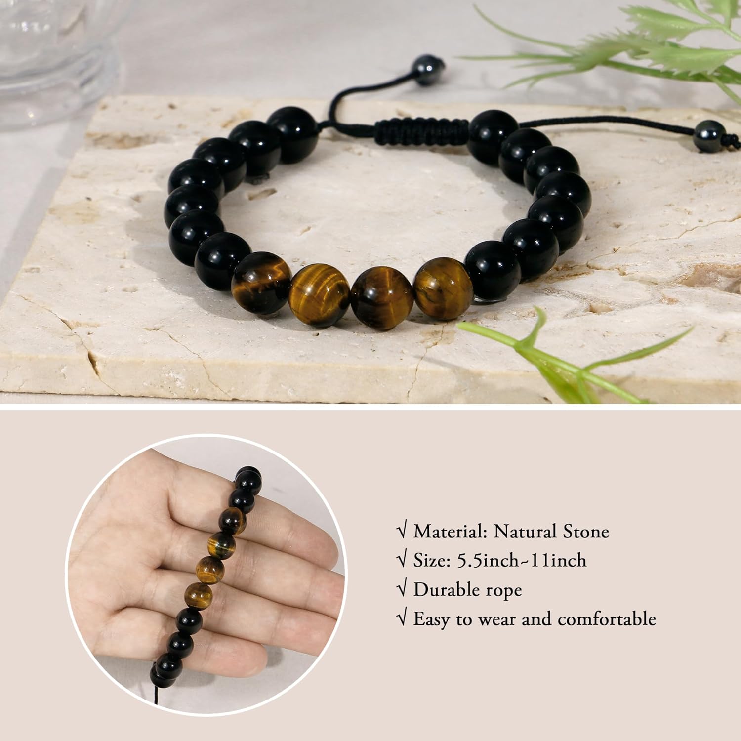 • Adjustable Bracelets: Bracelets can be adjusted from 5.5 to 11 inches by sliding the knot,fit for most men’s wrists. It’s very sturdy and not easy to break,comfortable to wear for a long period.