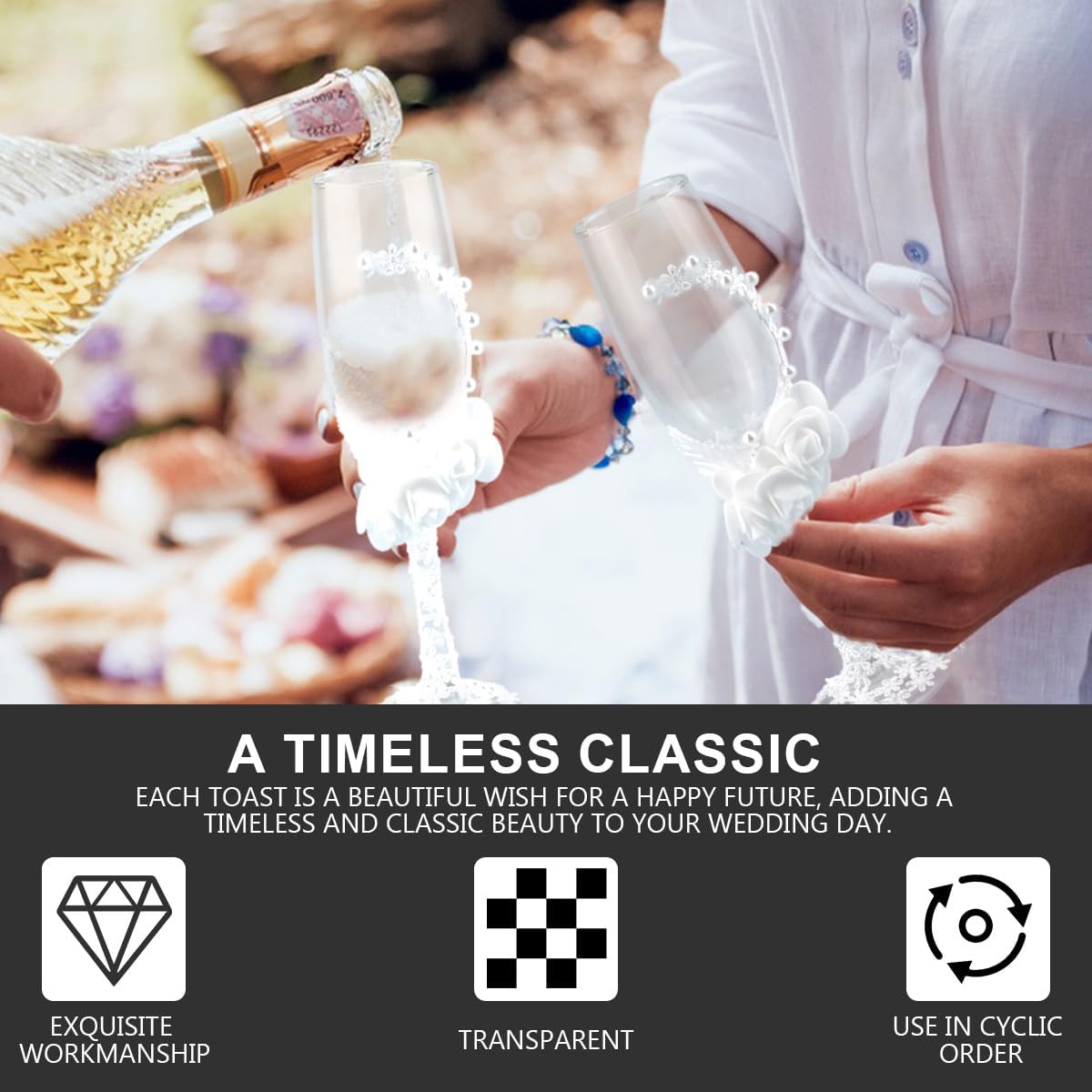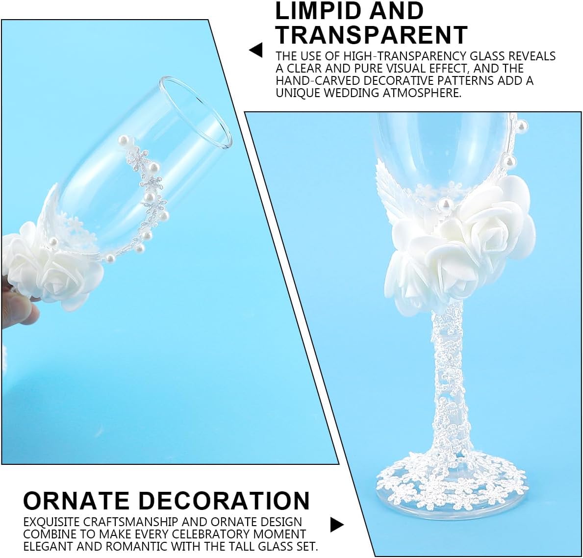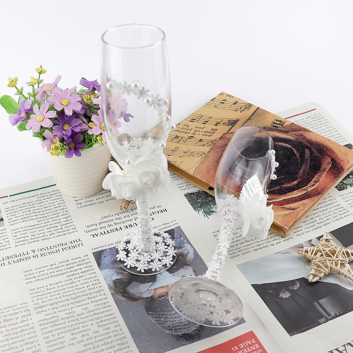 - PACKAGE QUANTITY: This set includes 2pcs champagne glasses, each long neck glass measures 7x7x26.5inches, providing a comfortable and elegant size for toasting and enjoying drinks, making your wedding reception even more special. They are perfect for toasting and celebrating the special moments of your wedding ceremony and are ideal for weddings, anniversaries and special celebrations.
