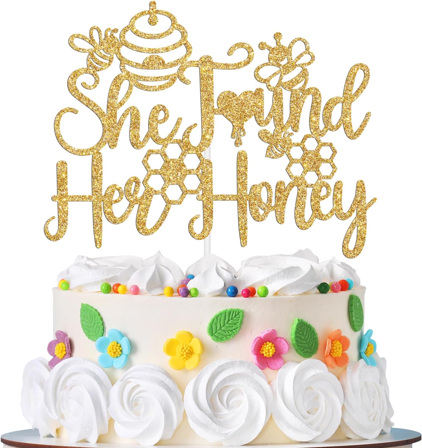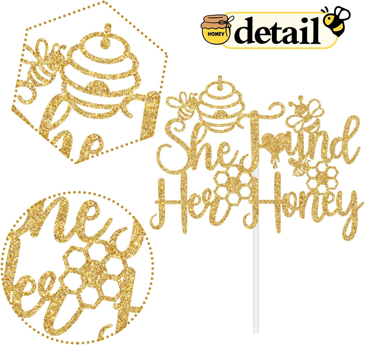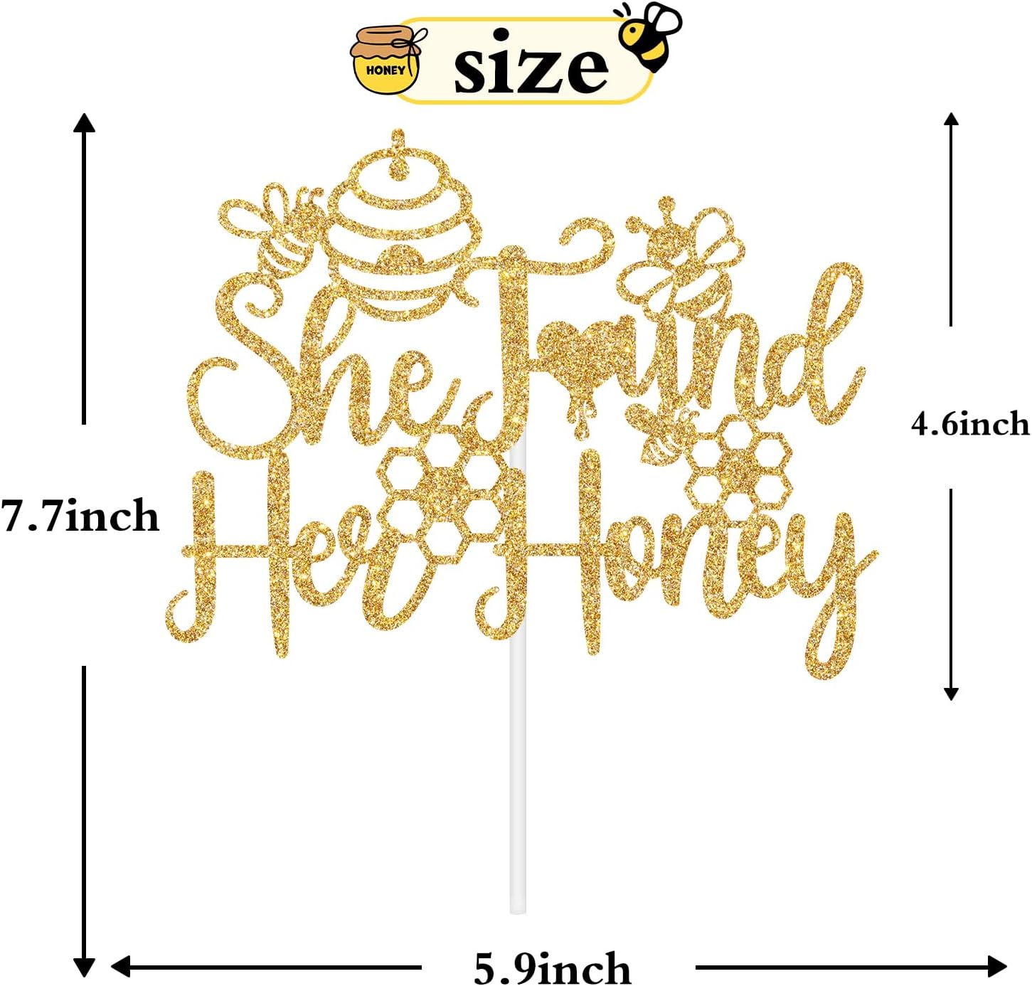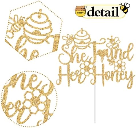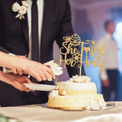 - What’s Included: You will get a piece of gold glitter cake topper(She Found Her Honey )and a white cardboard in order to effectively prevent damage during the delivery process.