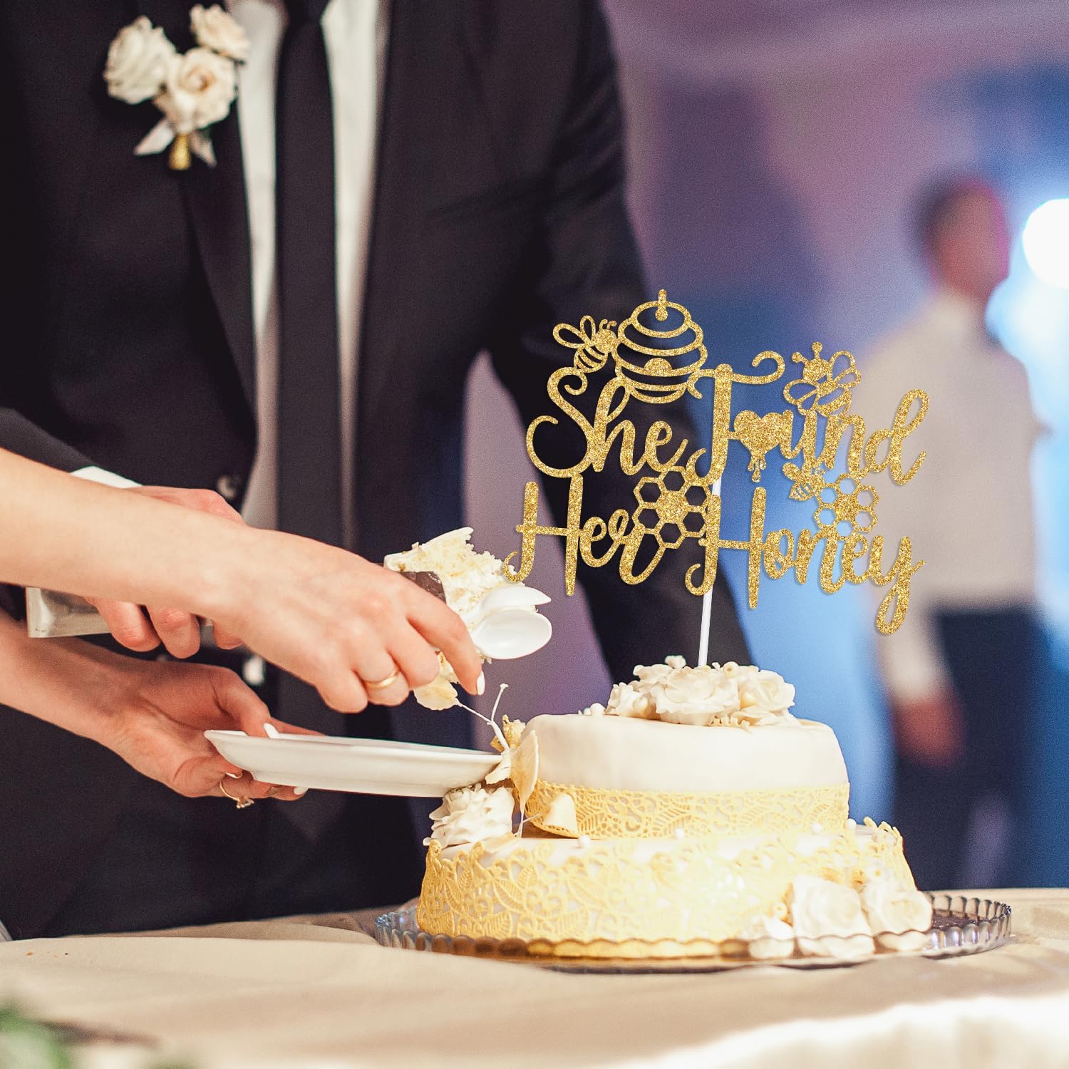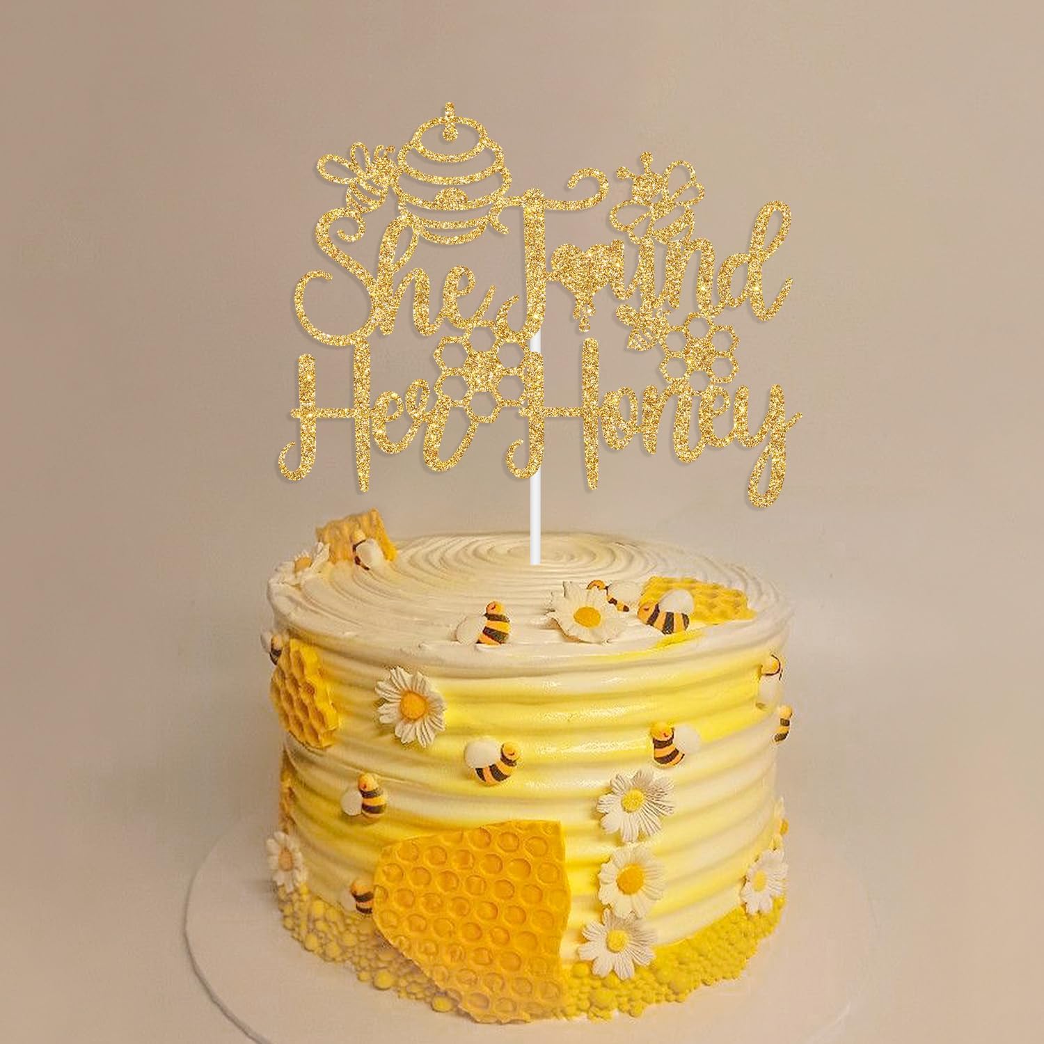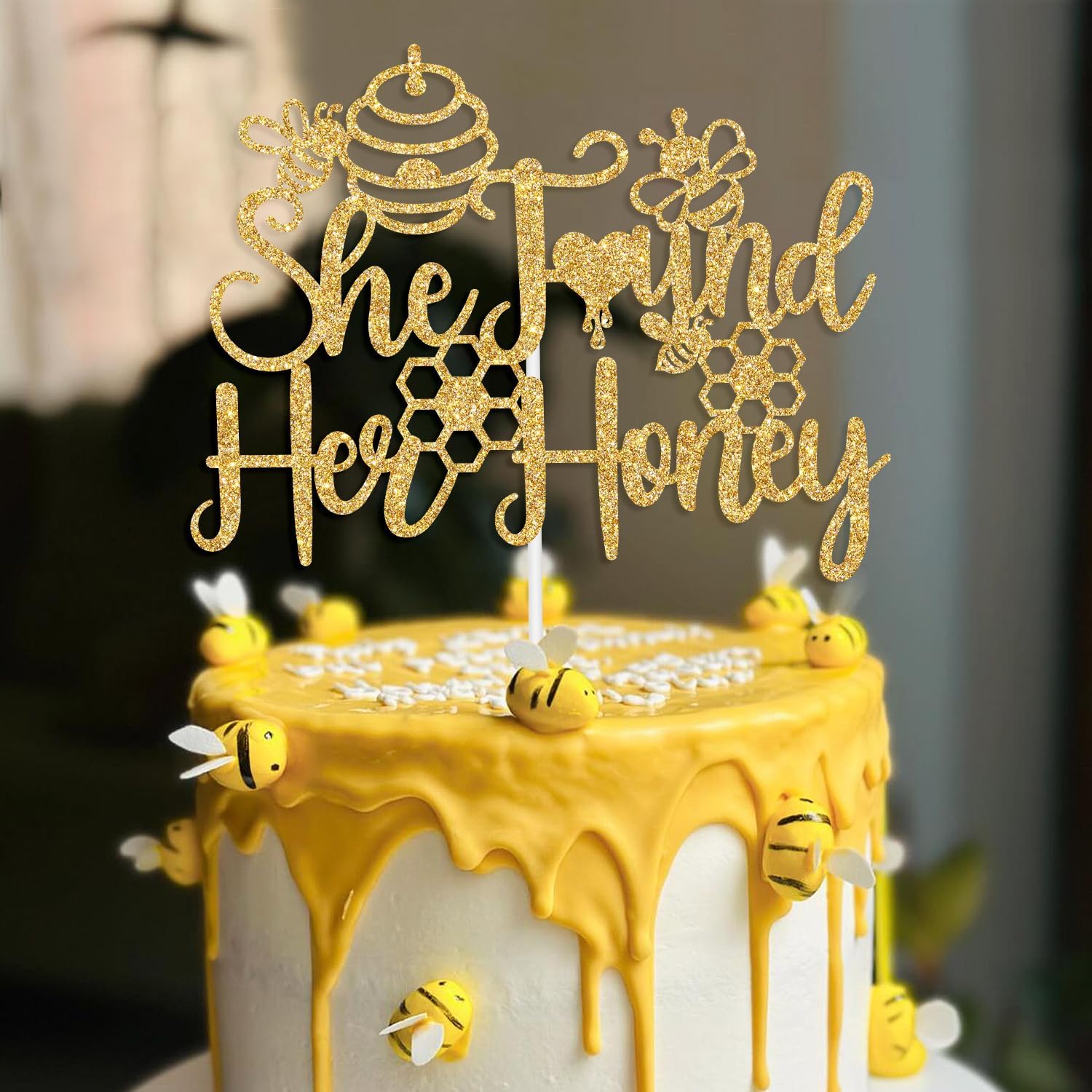 - What’s Included: You will get a piece of gold glitter cake topper(She Found Her Honey )and a white cardboard in order to effectively prevent damage during the delivery process.