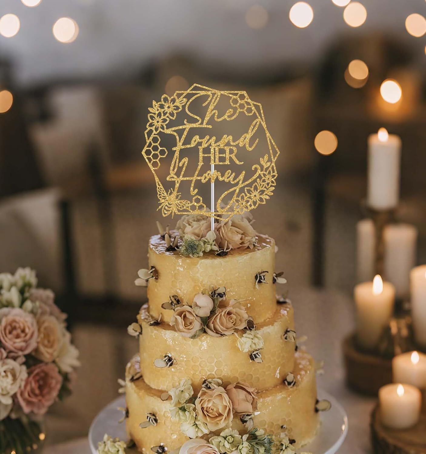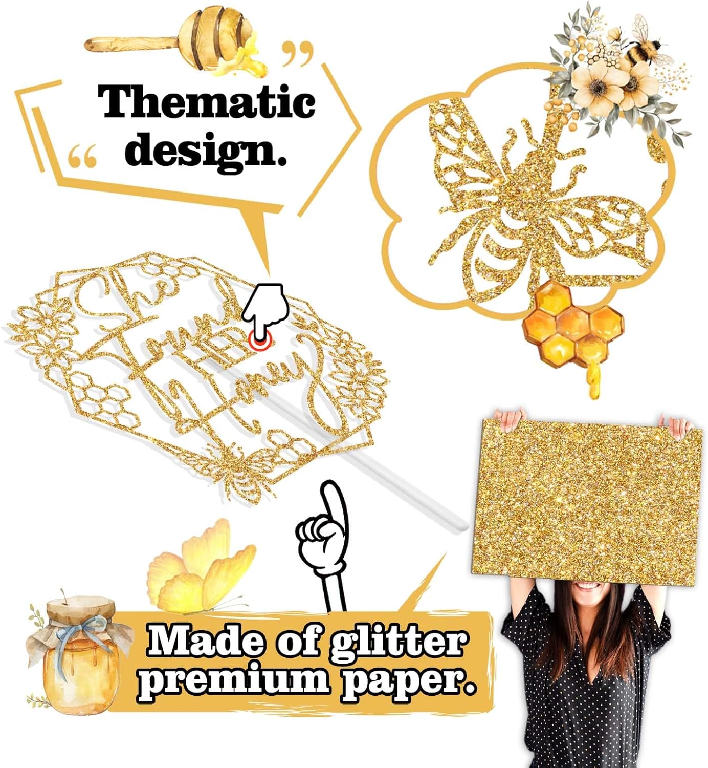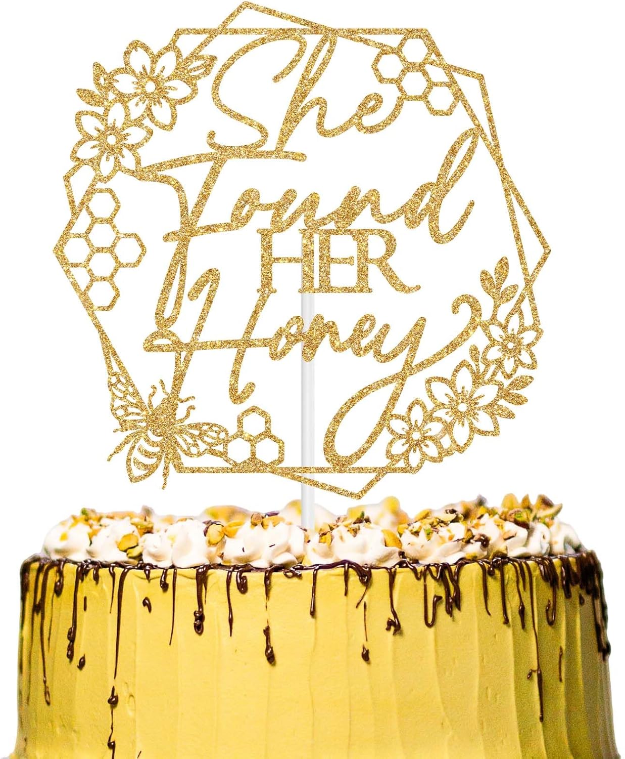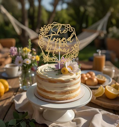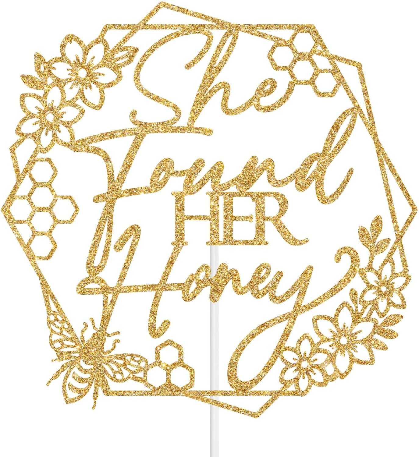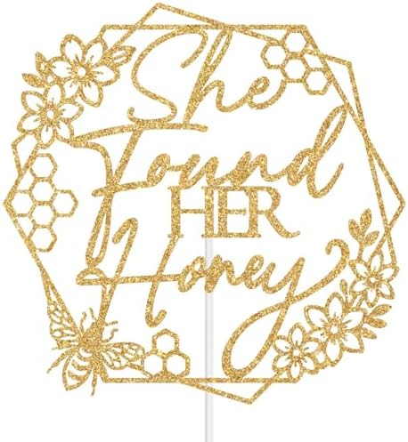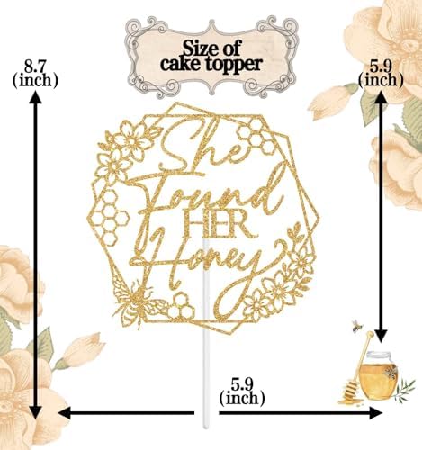 She Found Her Honey Cake TopperCelebrate veterans day with this enchanting gold glitter cake topper.Perfect for honey sweet bachlorette/wedding party, this delightful decoration adds a magical touch to any cake or dessert. Color: Gold Glitter Material: Glitter Paper Package include: 1pc She Found Her Honey Cake Topper Tips:Please be careful when tearing the package to avoid breaking. This product is made of glitter paper and paper stick. Please use with care to avoid puncturing. The color shown in the picture may be slightly different from the actual color due to different lighting or other factors. Thank you for your understanding.