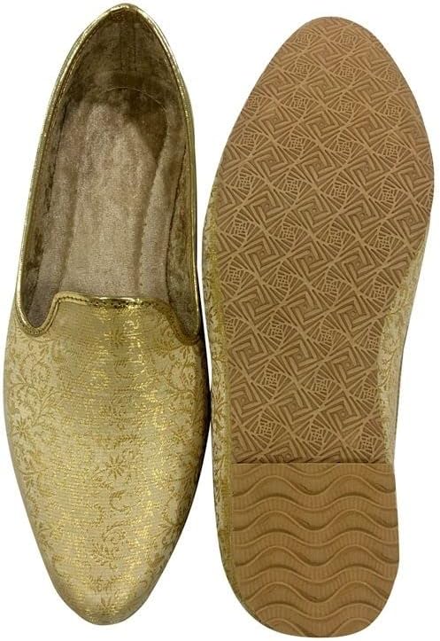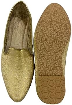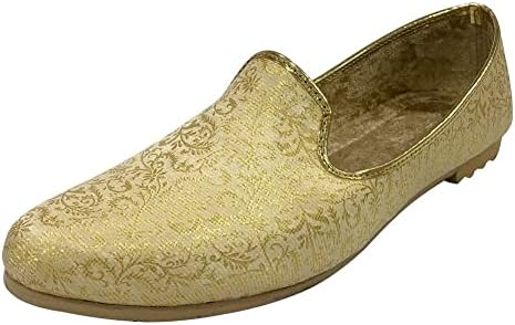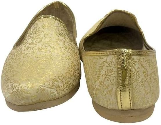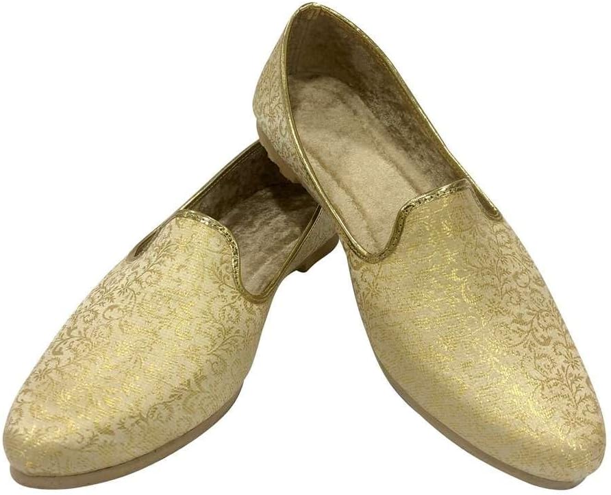 Shoe Bazar Punjabi Jutti for Mens Traditional Mojaris Shoes Cream Gold Wedding for Groom Indian Handmade Ethnic Jooti