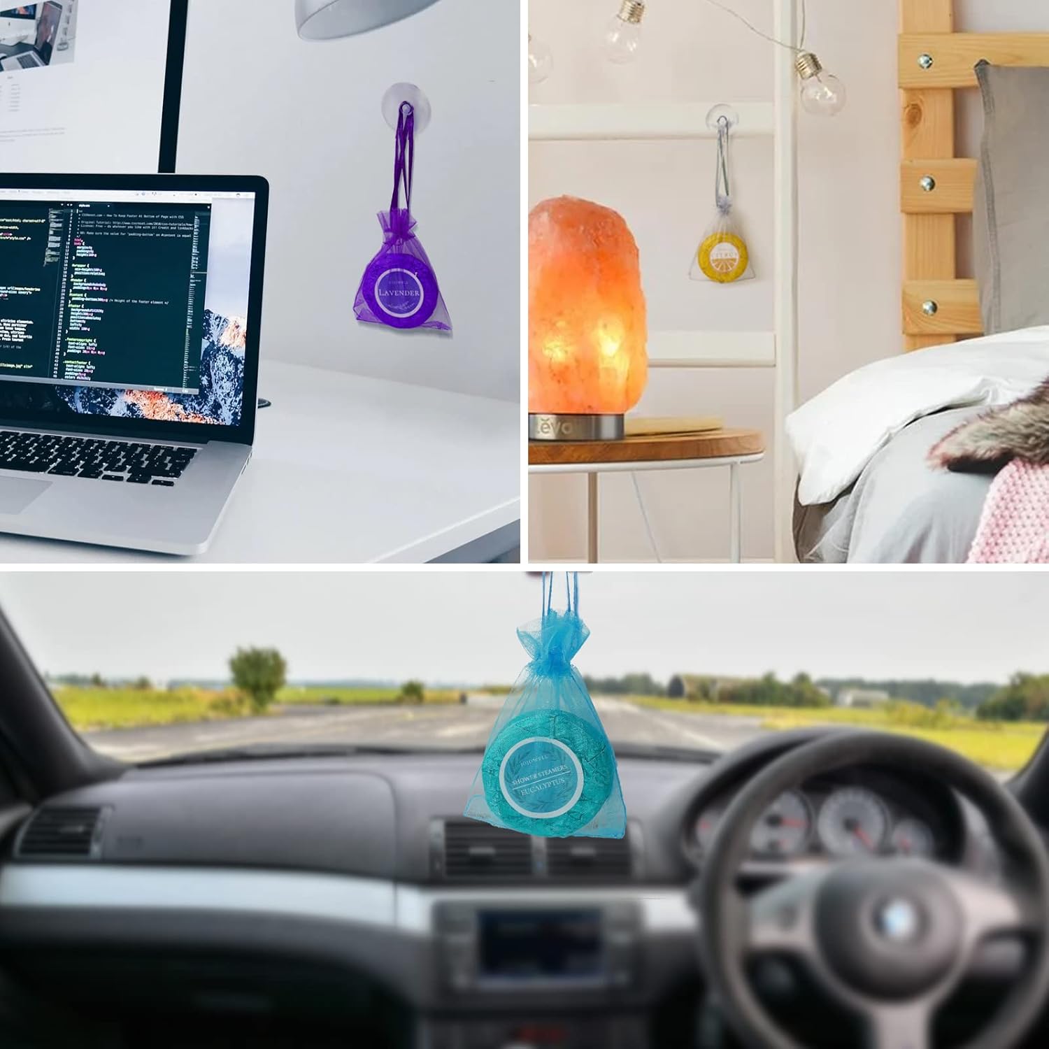 - Multi-Scene Use – Each independent package is equipped with 2 mesh bags and 2 suction cups, which can be placed in the car, bedroom, or even on the desk, used in multiple scenes, and enjoy the aromatherapy life. After get off work, enjoy the enchanting aroma of essential oils from shower steamers, enough to dissipate the tiredness of the day! Indulge in a private luxury home spa.