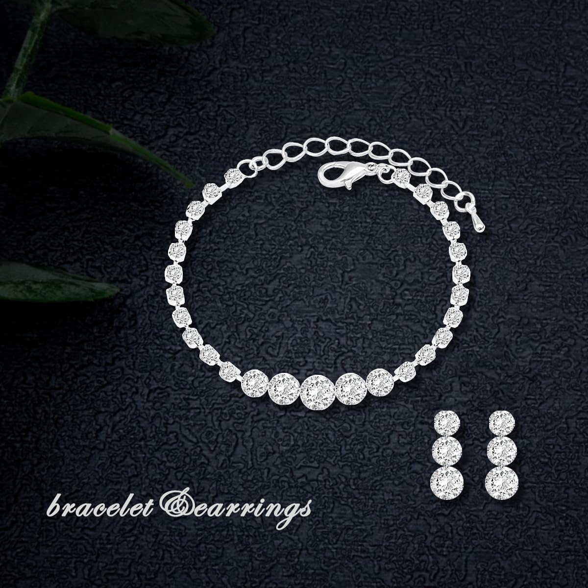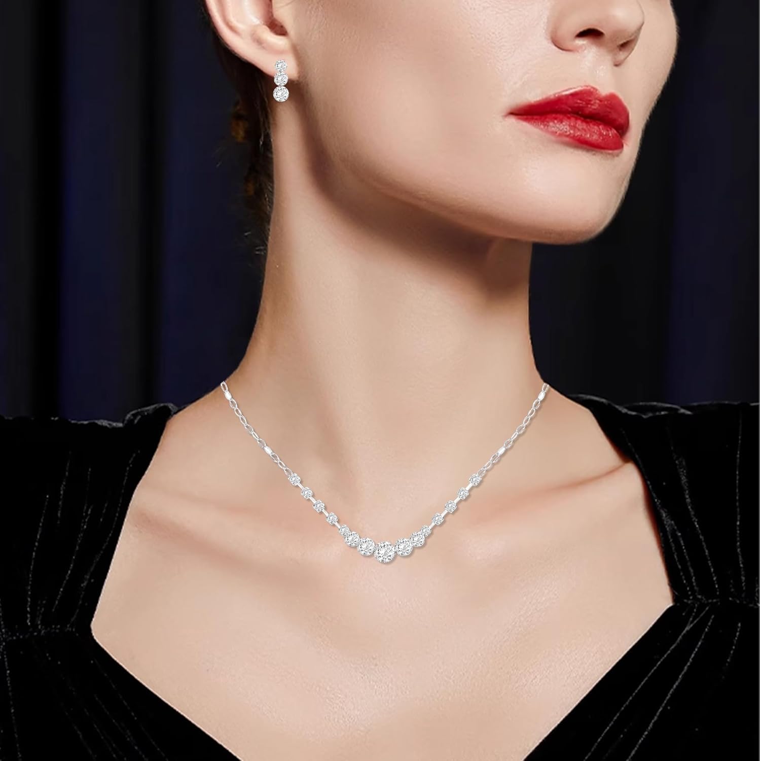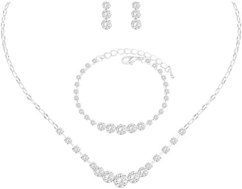 • Material: Adorned with meticulously selected sparkling rhinestones, this jewelry set is crafted from eco-friendly brass with a silver plating that is both lead-free and nickel-free. It adheres to the rigorous Prop 65 standard, ensuring it won’t tarnish or irritate your skin.