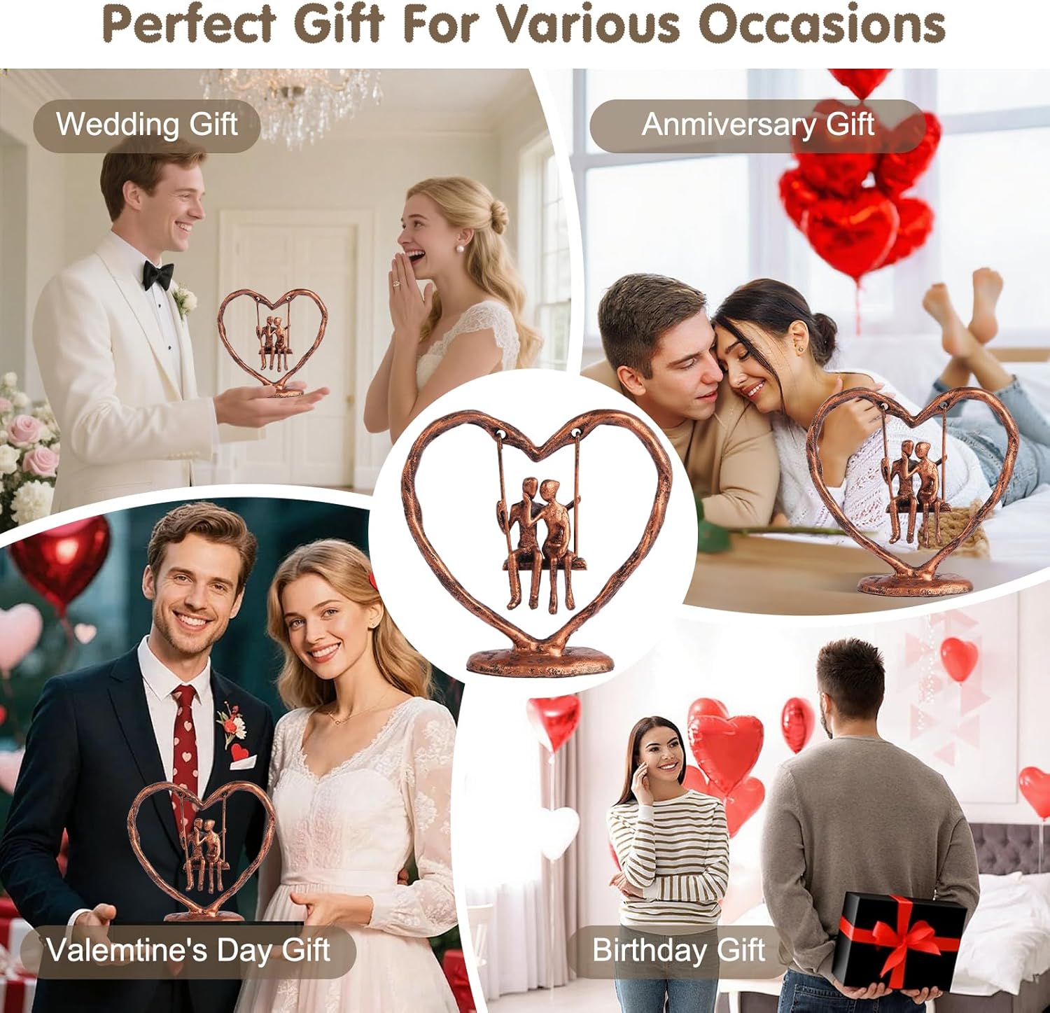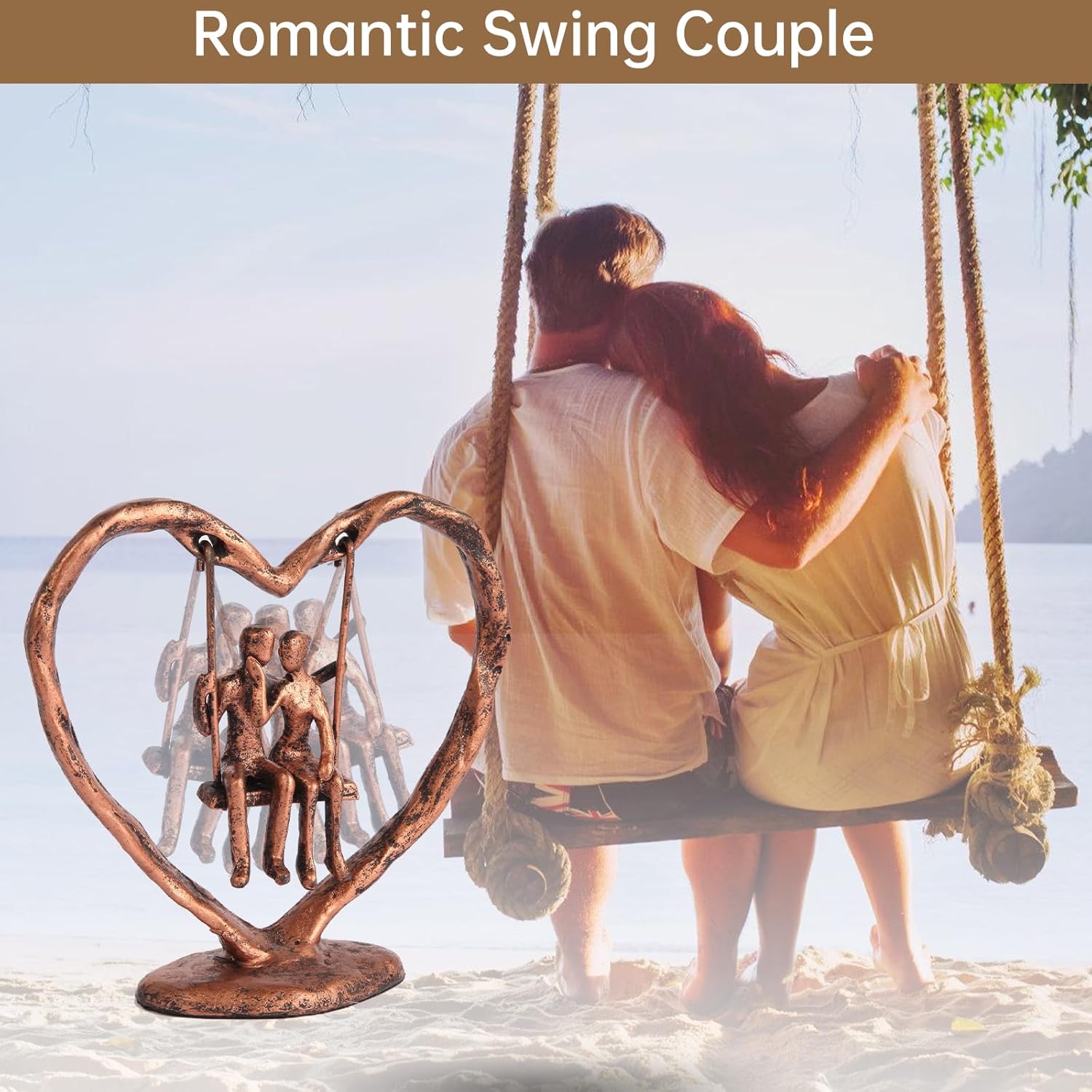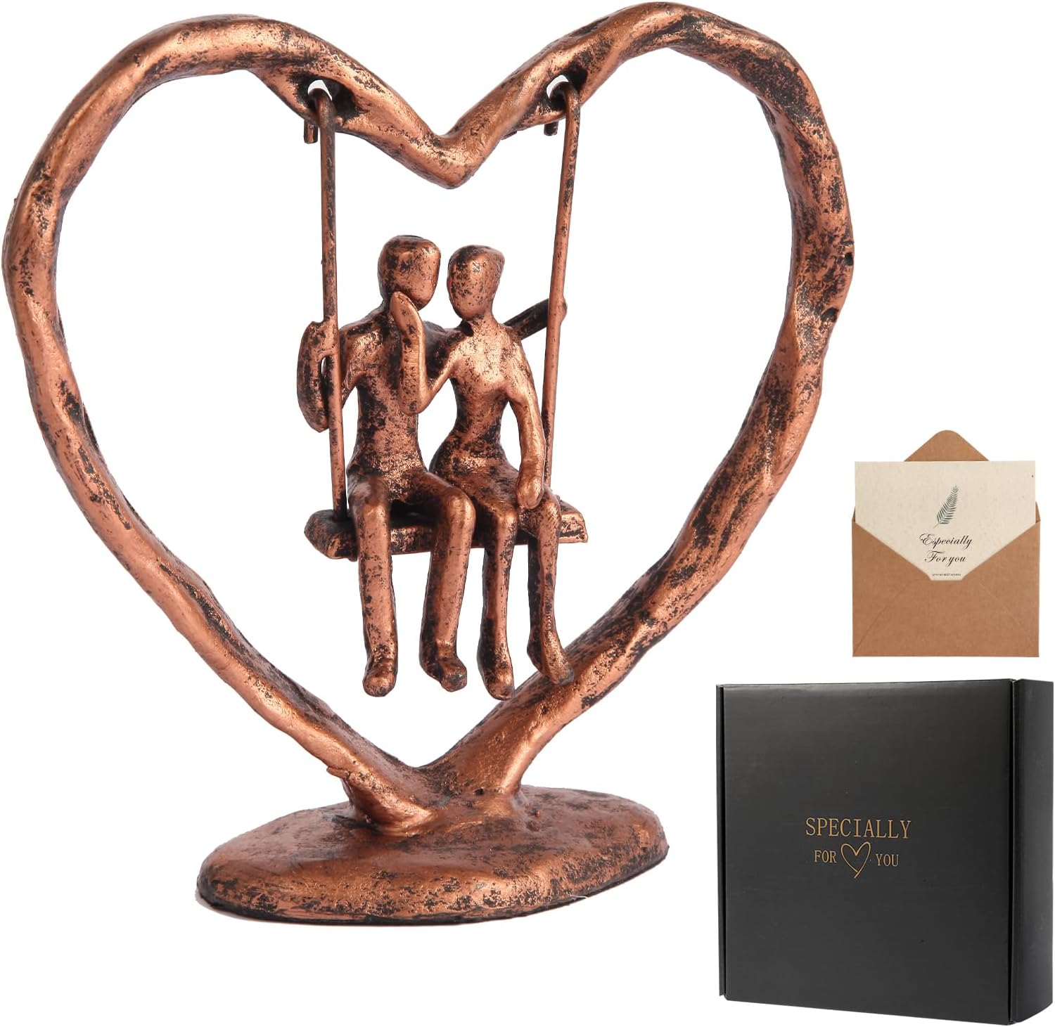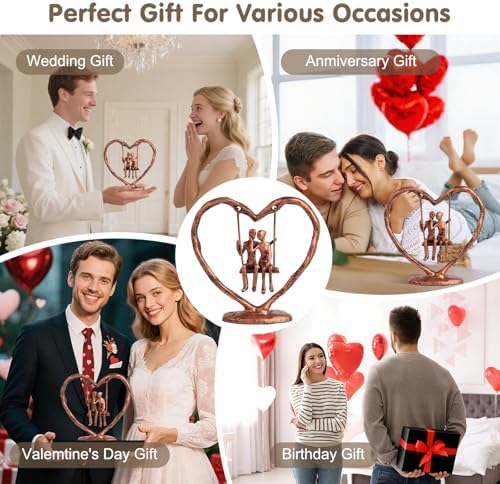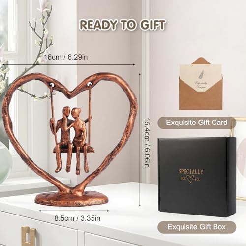 - EXQUISITE BROZEN WEDDING ANNIVERSARY GIFT:This swing couple sculpture is a one-of-a-kind anniversary gift for her, him, wife or husband. Its unique heart-shaped frame holds the pair, and their joyful swinging scene shows carefree happiness and deep bond. More than a sculpture, it’s a vivid love narrative—making every anniversary a celebration of your extraordinary love.
