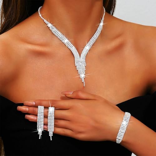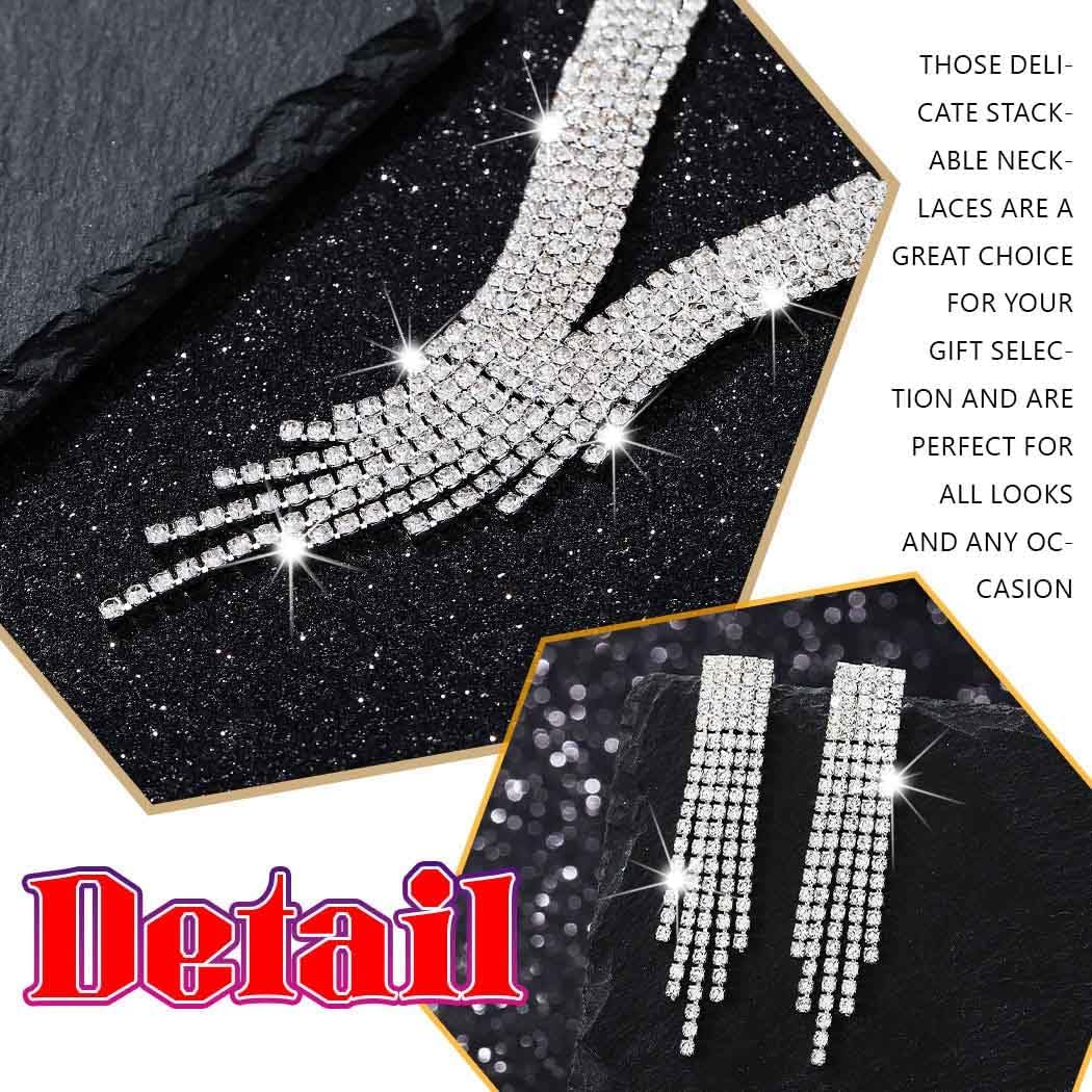 Sixexey Rhinestone Bridal Necklace Earrings Sparkly Jewelry Set Prom Wedding Party Necklace Jewelry Accessories for Women