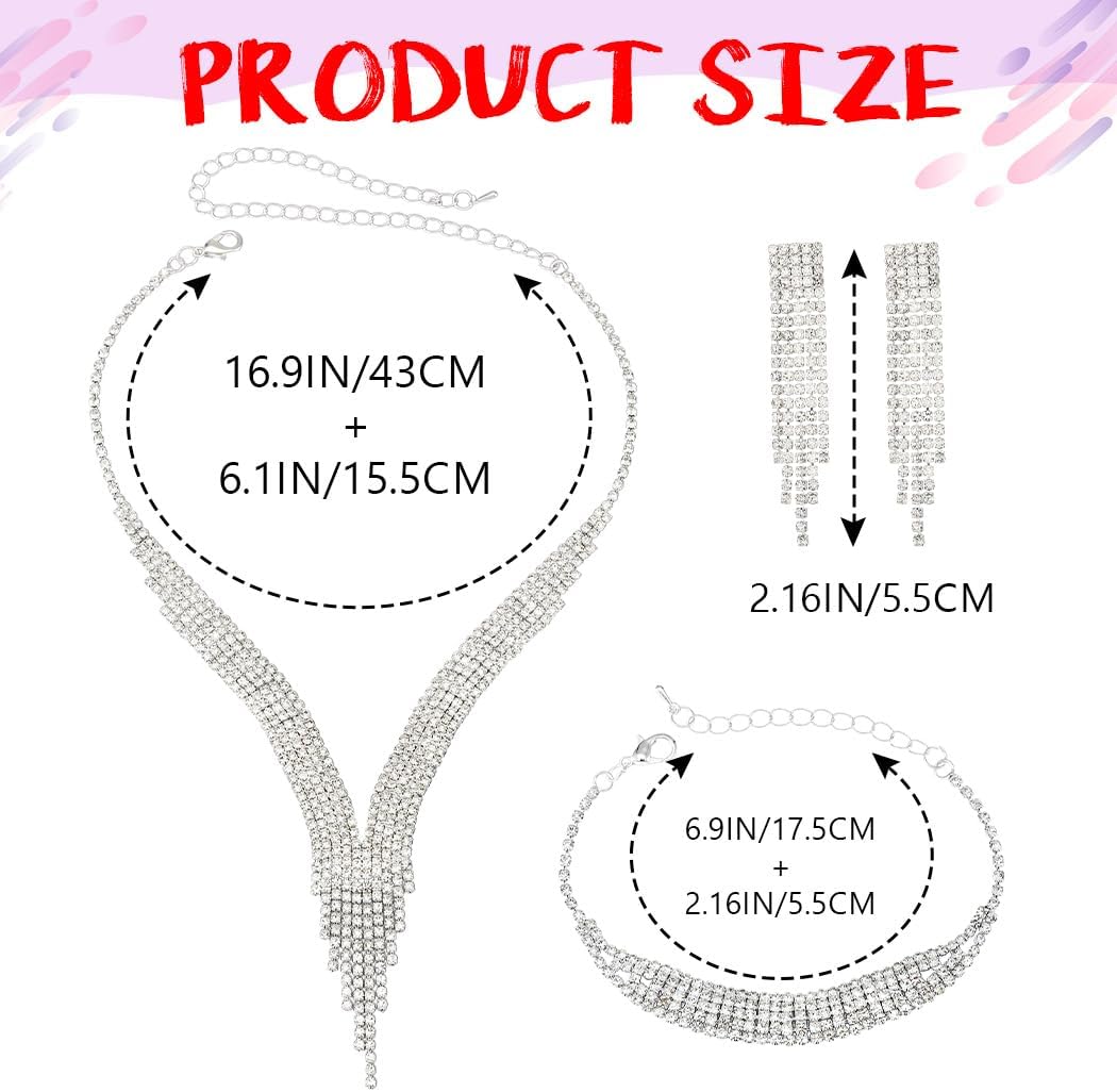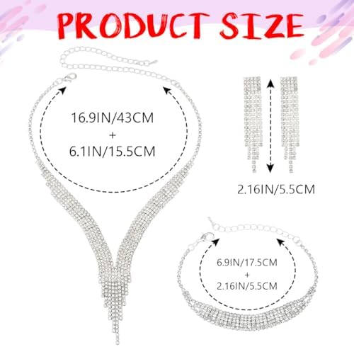 • Rhinestone jewelry size is 16.9in+6.1in extender chain,bracelet size is 6.9in+2.16in extender chain and earrings size is 2.16in,you can adjust the length of necklace freely by yourself
