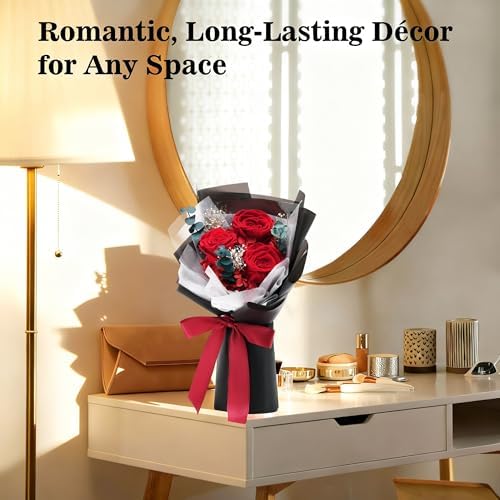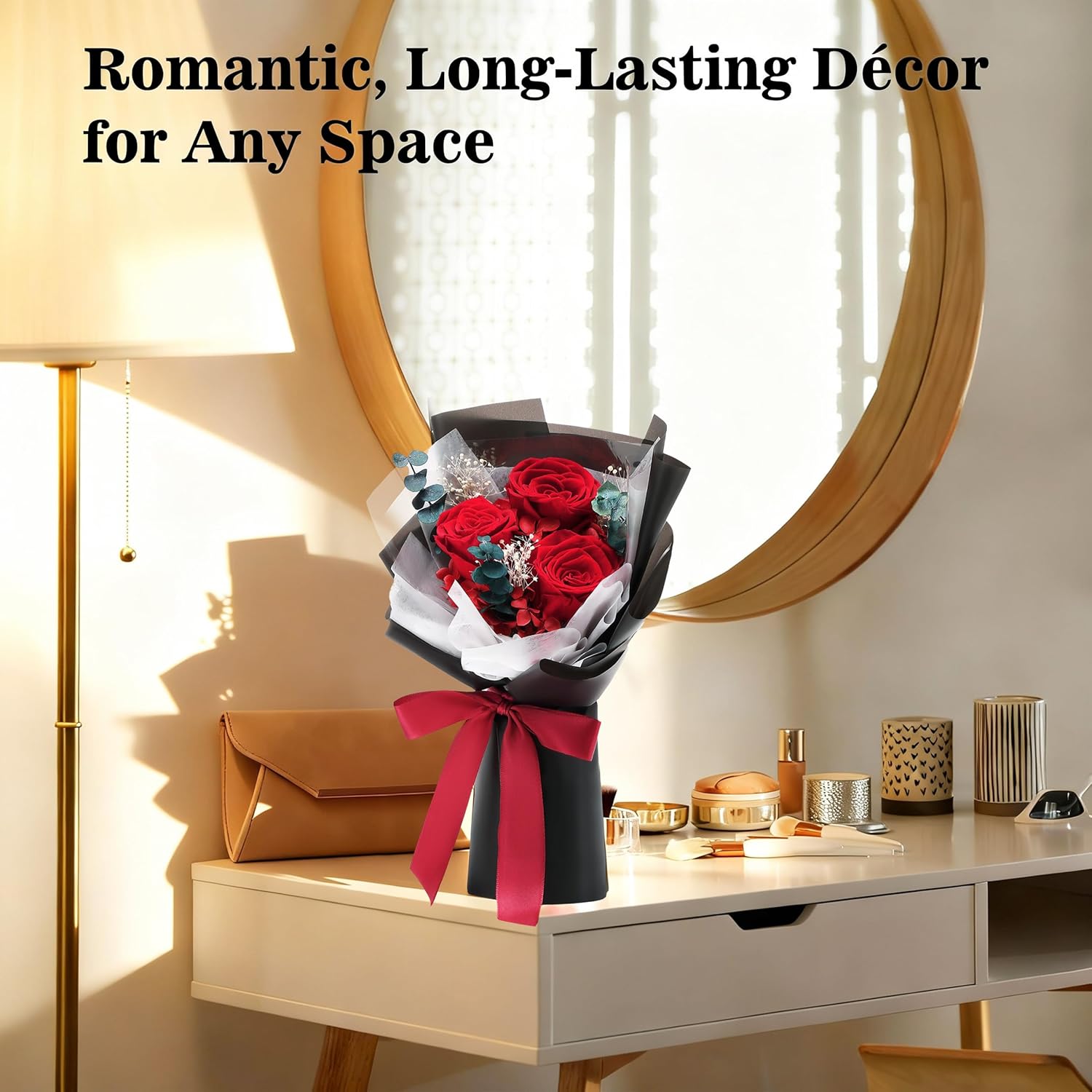 - Versatile Home & Office Décor – This eternal rose bouquet adds a romantic accent to many spaces, such as bedroom, living room, dining table, hallway, office desk, reception, bookshelf, coffee table or shop display. The compact size makes it easy to place while still standing out as a focal point. Use it as a table centerpiece, room décor, photo prop or small decorative arrangement to create a cozy and elegant atmosphere without daily care